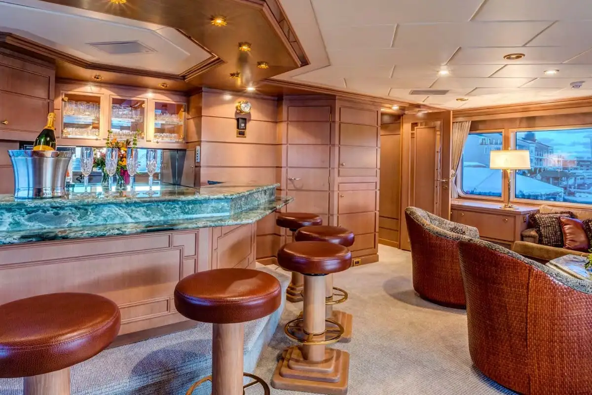 After lunch it is time to up anchor and sail along the coast to your evening destination. You join the captain on the bridge to take the helm of this fine yacht, as she makes 12 knots in open water. Reaching the harbour in good time, you find your family and friends enjoying sundowners the main deck aft.