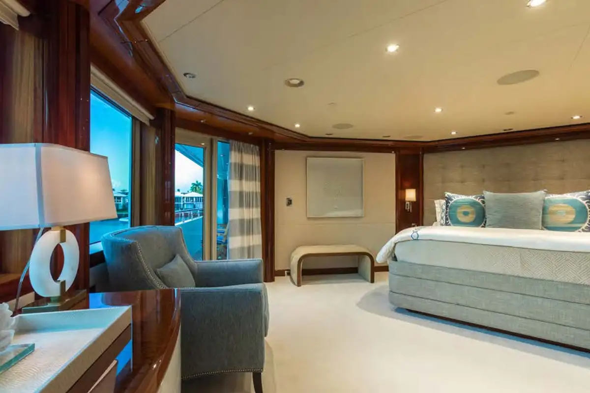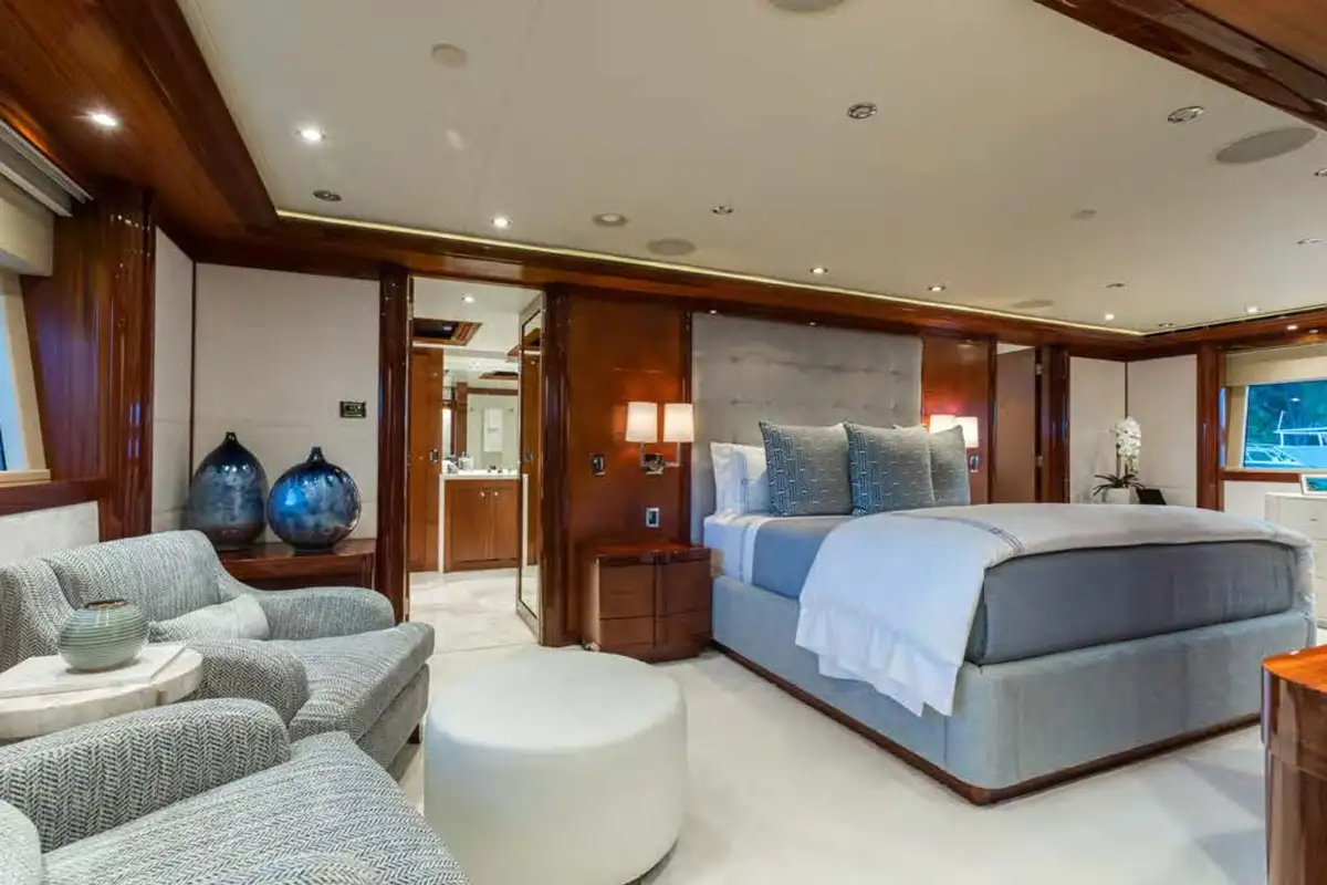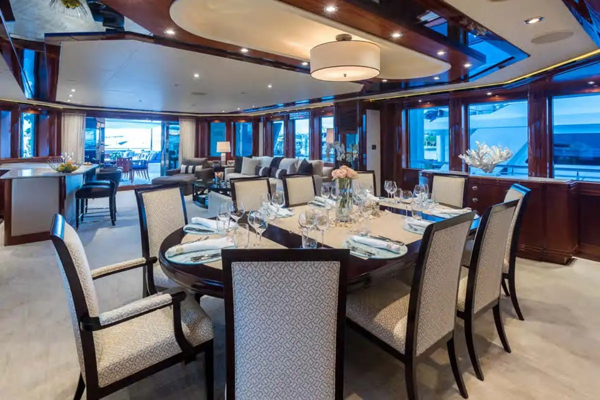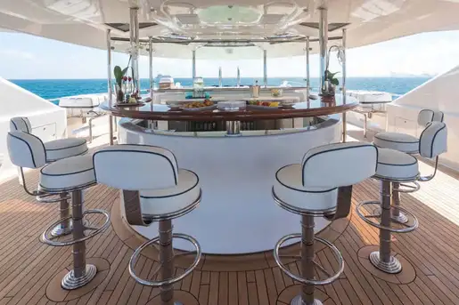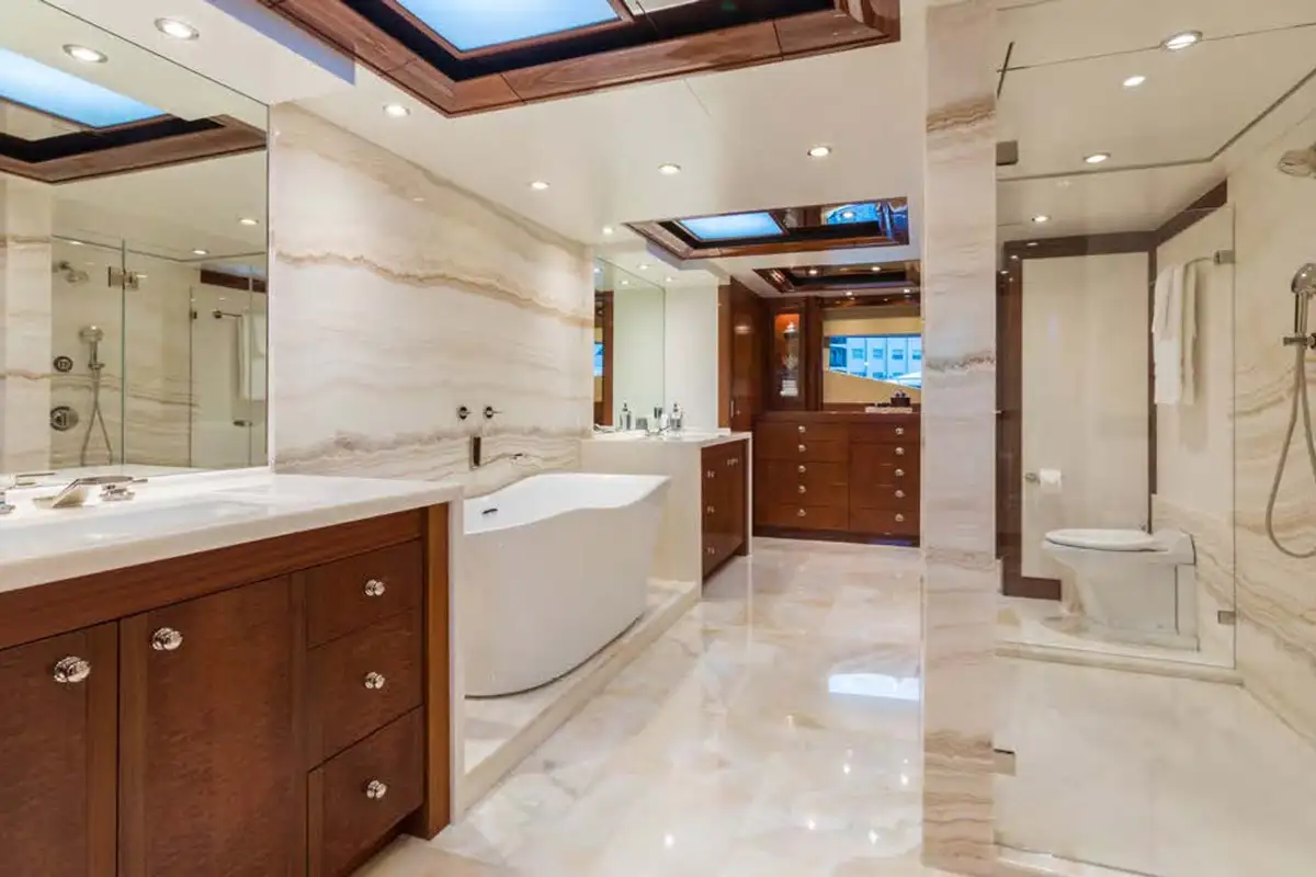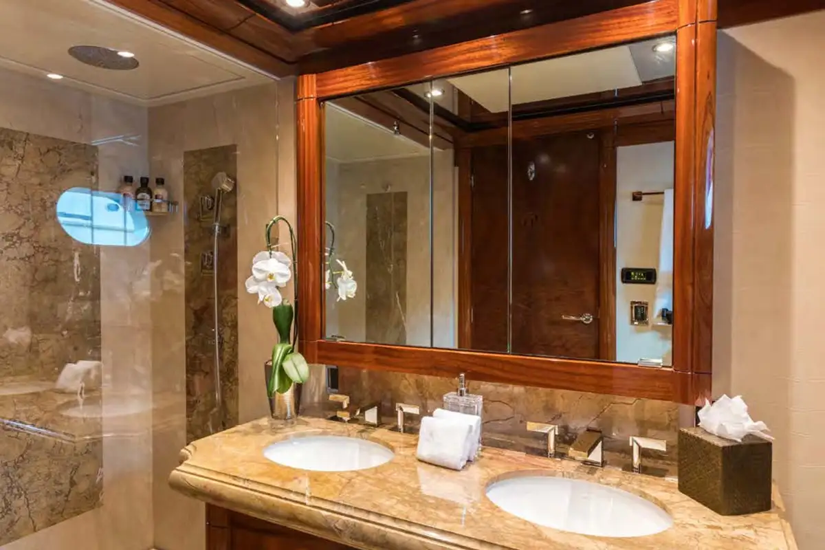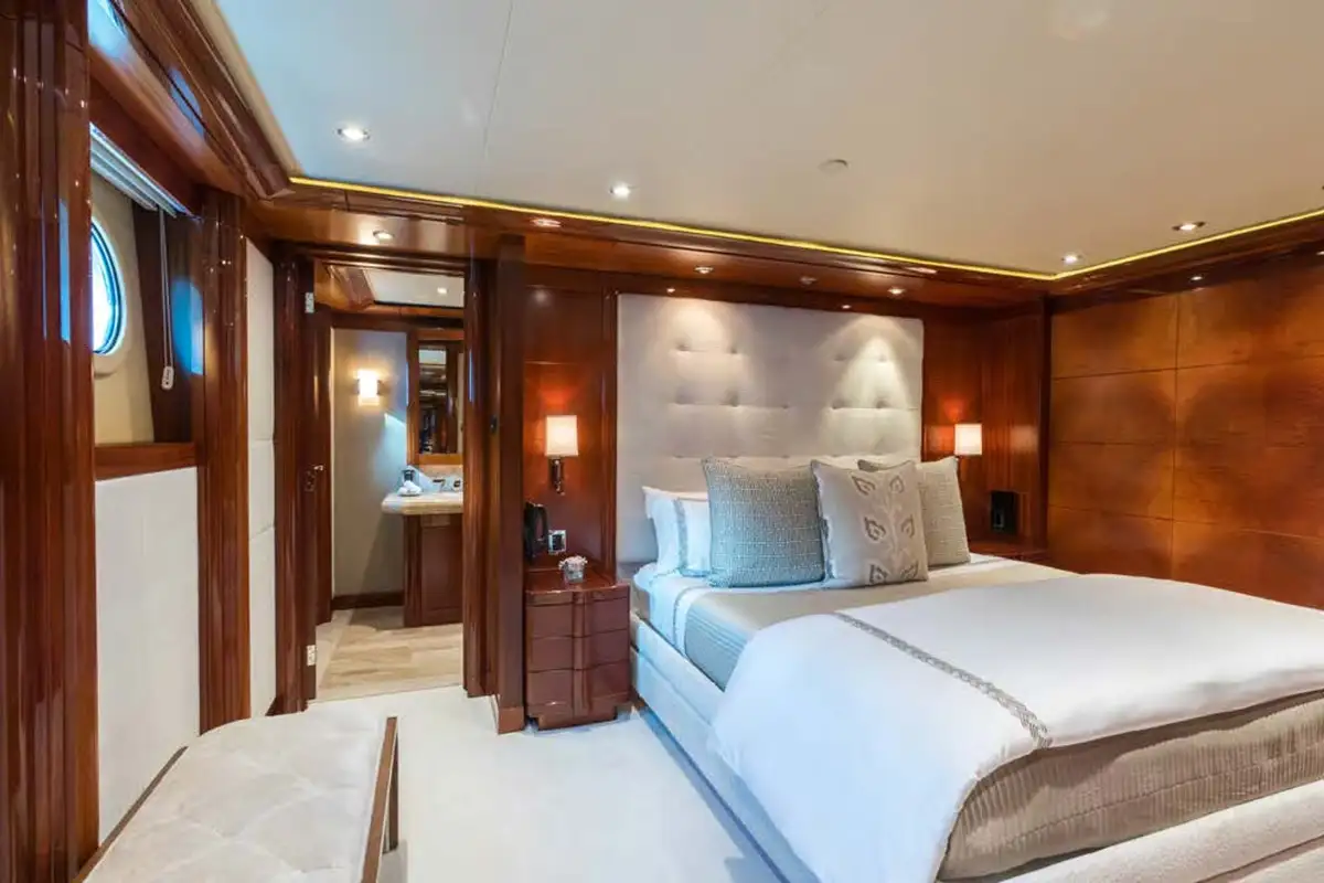Luxury charter yacht CHASING DAYLIGHT welcomes up to 12 guests in the sumptuous comfort of six staterooms. Each stateroom is beautifully appointed, creating an oasis to rest up for the next day ahead. The superyacht’s king-bed master stateroom is located on the main deck to offer added privacy. On the bridge deck, the motor yacht features a king VIP with a private balcony, which is the ideal place for morning coffee or to read a book. The yacht’s additional staterooms on the lower level include two king-bed staterooms, a convertible twin/queen stateroom and a double-bed stateroom with a Pullman.