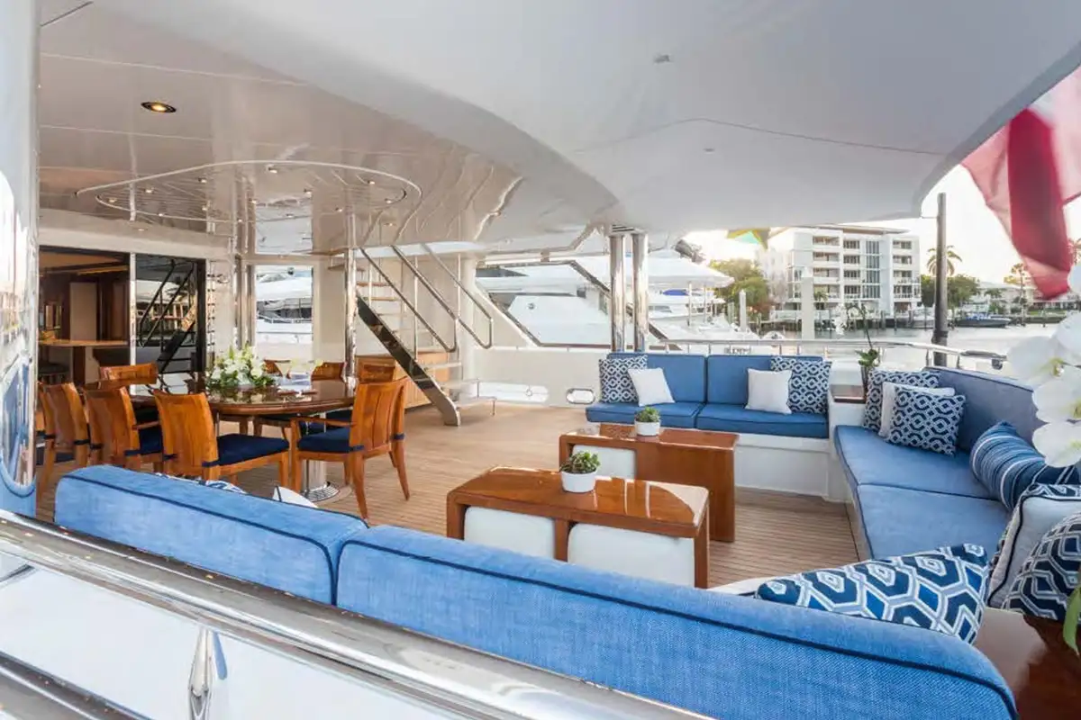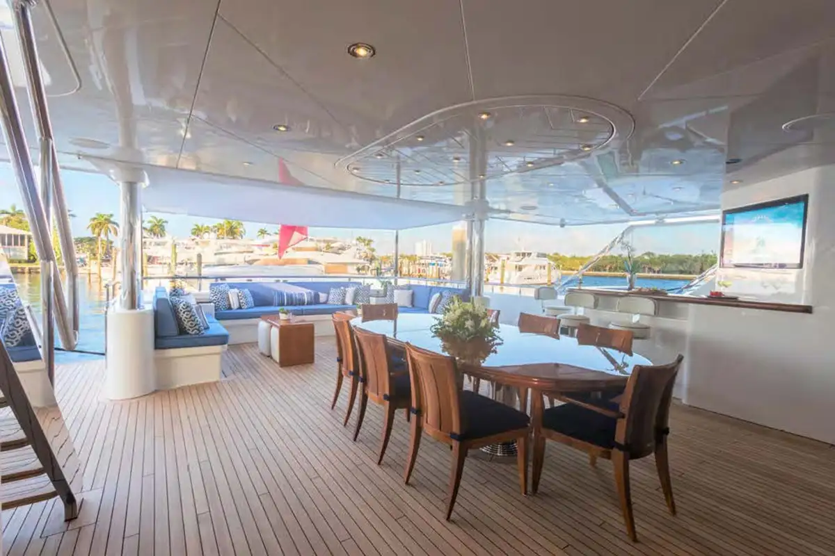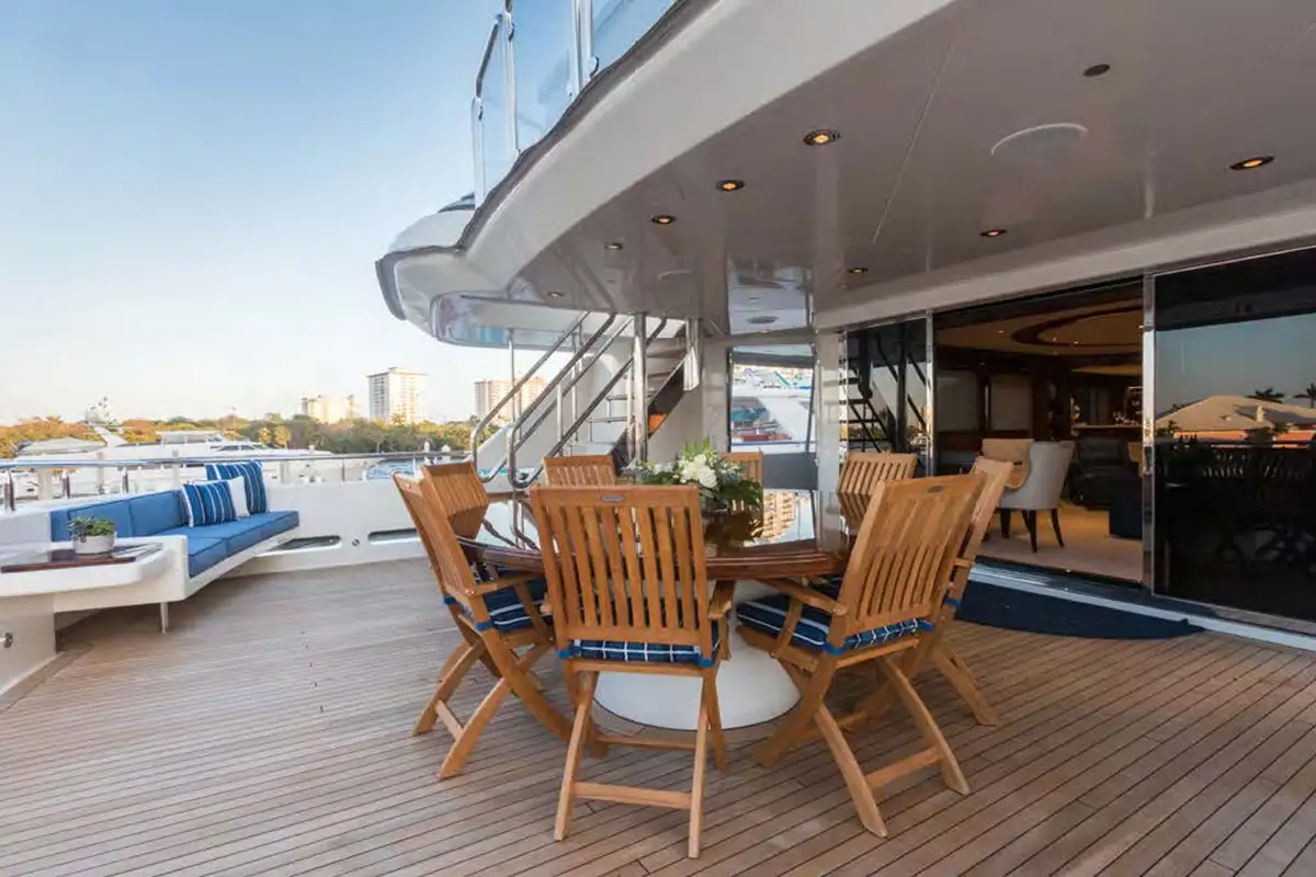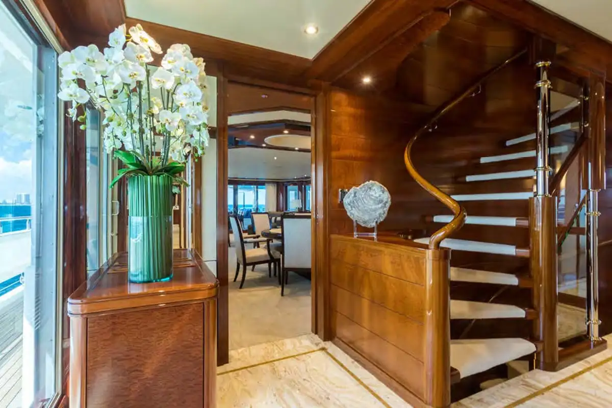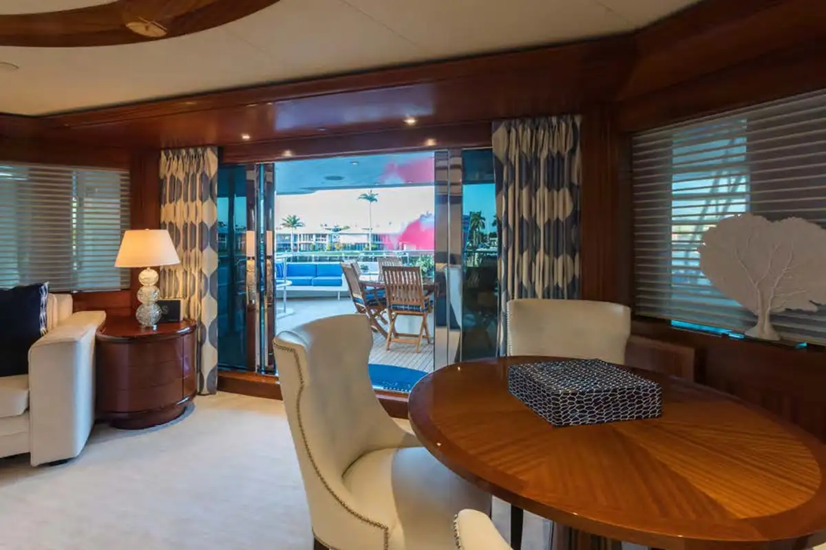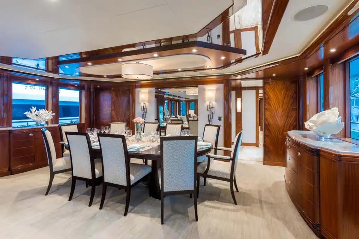 Luxury charter yacht CHASING DAYLIGHT welcomes up to 12 guests in the sumptuous comfort of six staterooms. Each stateroom is beautifully appointed, creating an oasis to rest up for the next day ahead. The superyacht’s king-bed master stateroom is located on the main deck to offer added privacy. On the bridge deck, the motor yacht features a king VIP with a private balcony, which is the ideal place for morning coffee or to read a book. The yacht’s additional staterooms on the lower level include two king-bed staterooms, a convertible twin/queen stateroom and a double-bed stateroom with a Pullman.