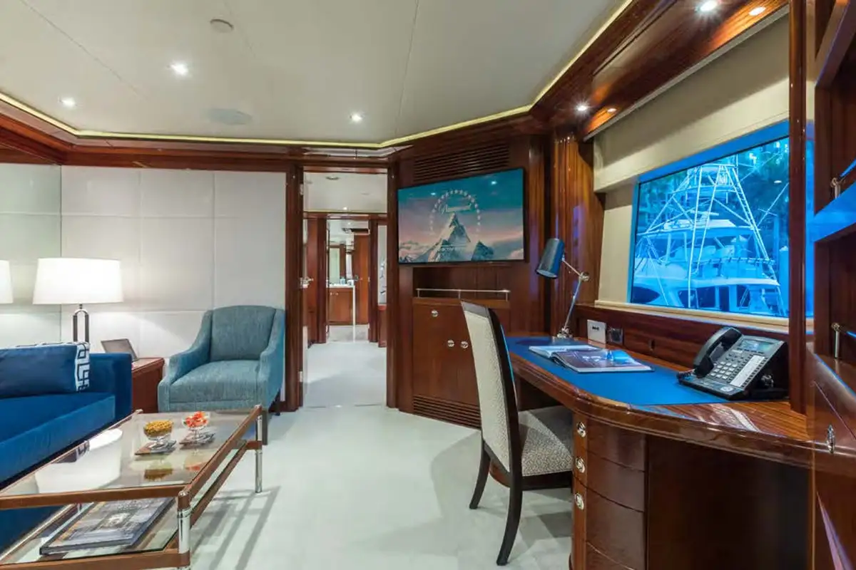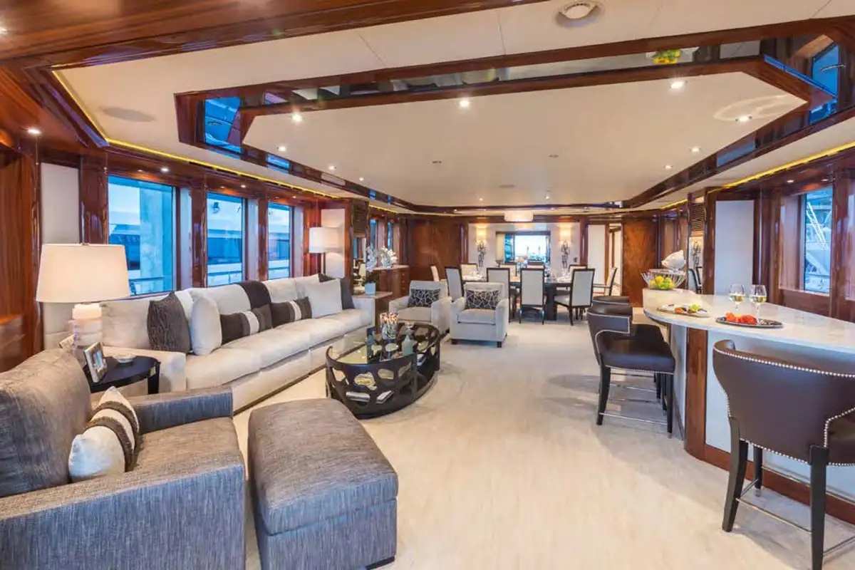 Guests will feel right at home in CHASING DAYLIGHT’s contemporary styled interior. Expansive windows enrich the interior with natural light and allow guests to take in sea views while enjoying the interior’s comforts. The superyacht’s main salon and skylounge both provide desirable spaces for guests to unwind and socialize. An elevator servicing all levels ensures easy movement throughout the yacht.