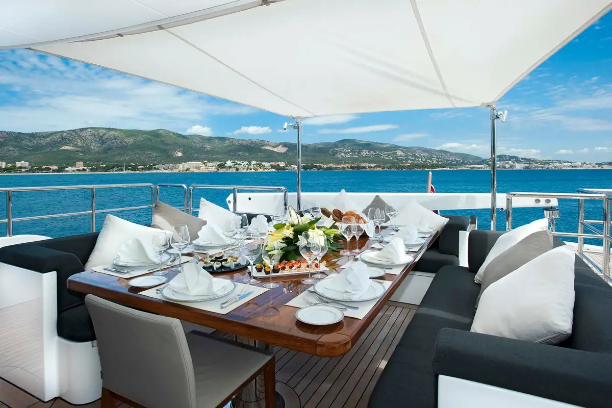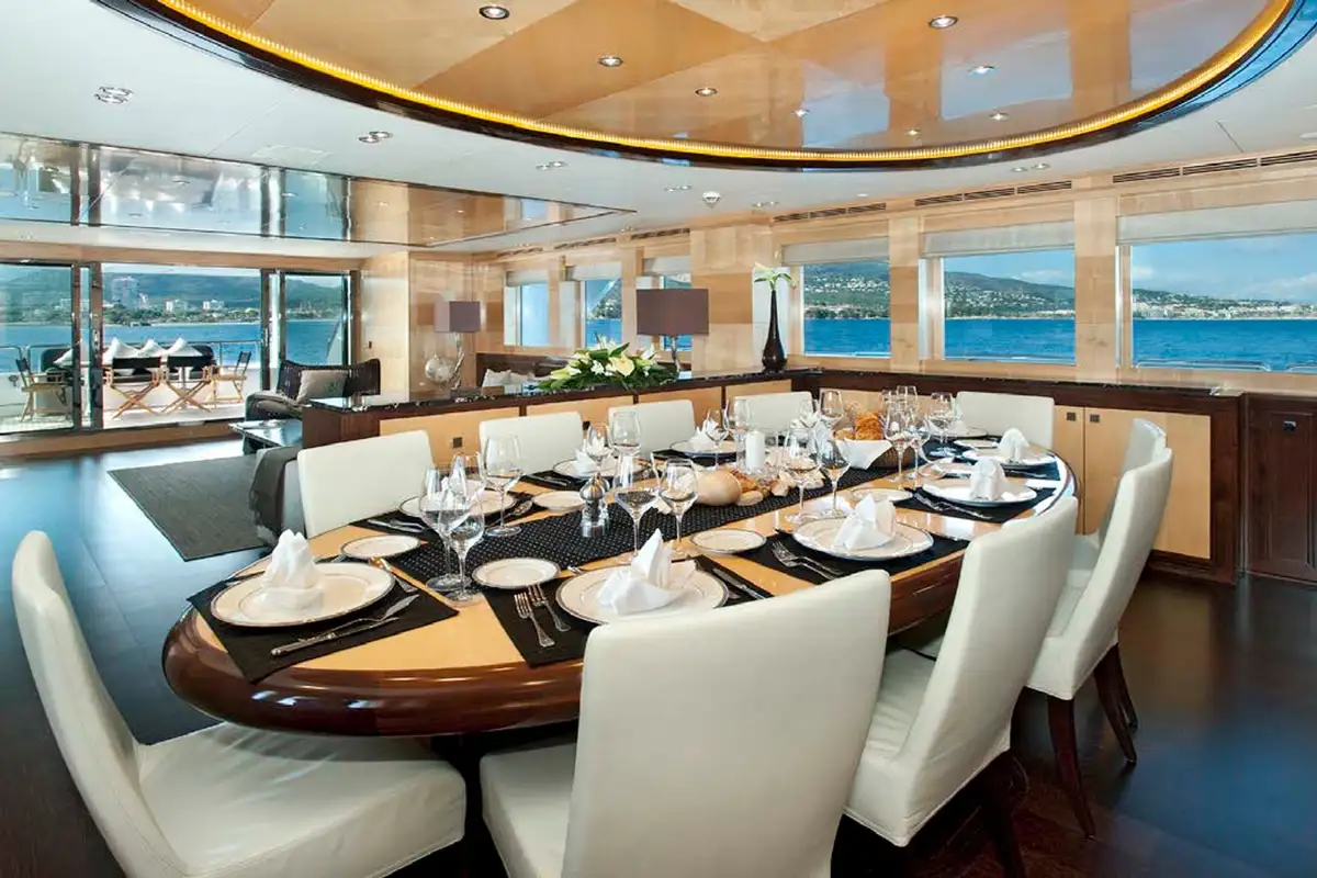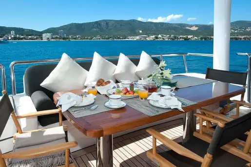 CHRISTINA G’s highly trained crew will do their utmost to ensure you and your guests are well looked after, as glowing references from past guests testify. Not only is their hospitality of the highest standard, whether you’re dining al fresco (at one of the two on-deck dining areas or in the formal dining area on the main deck), relaxing in the jacuzzi on the sun deck, or making the most of the water sports or gym equipment, they’ll ensure you want for nothing.
