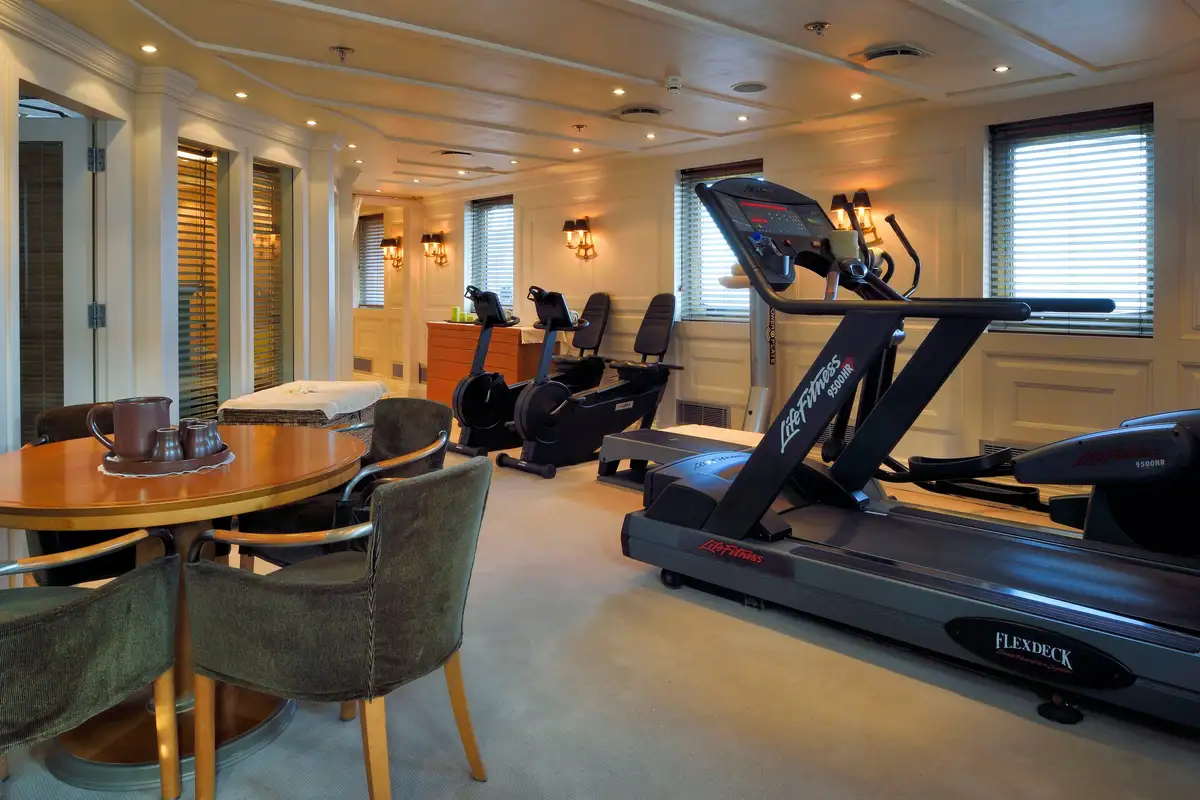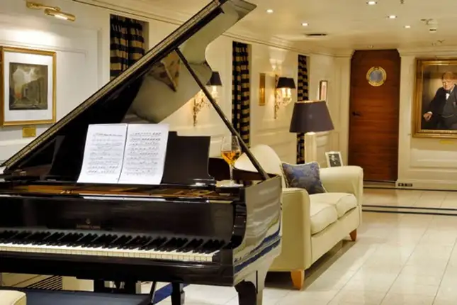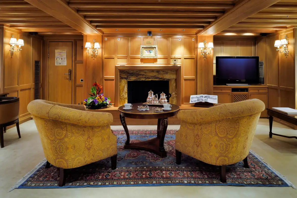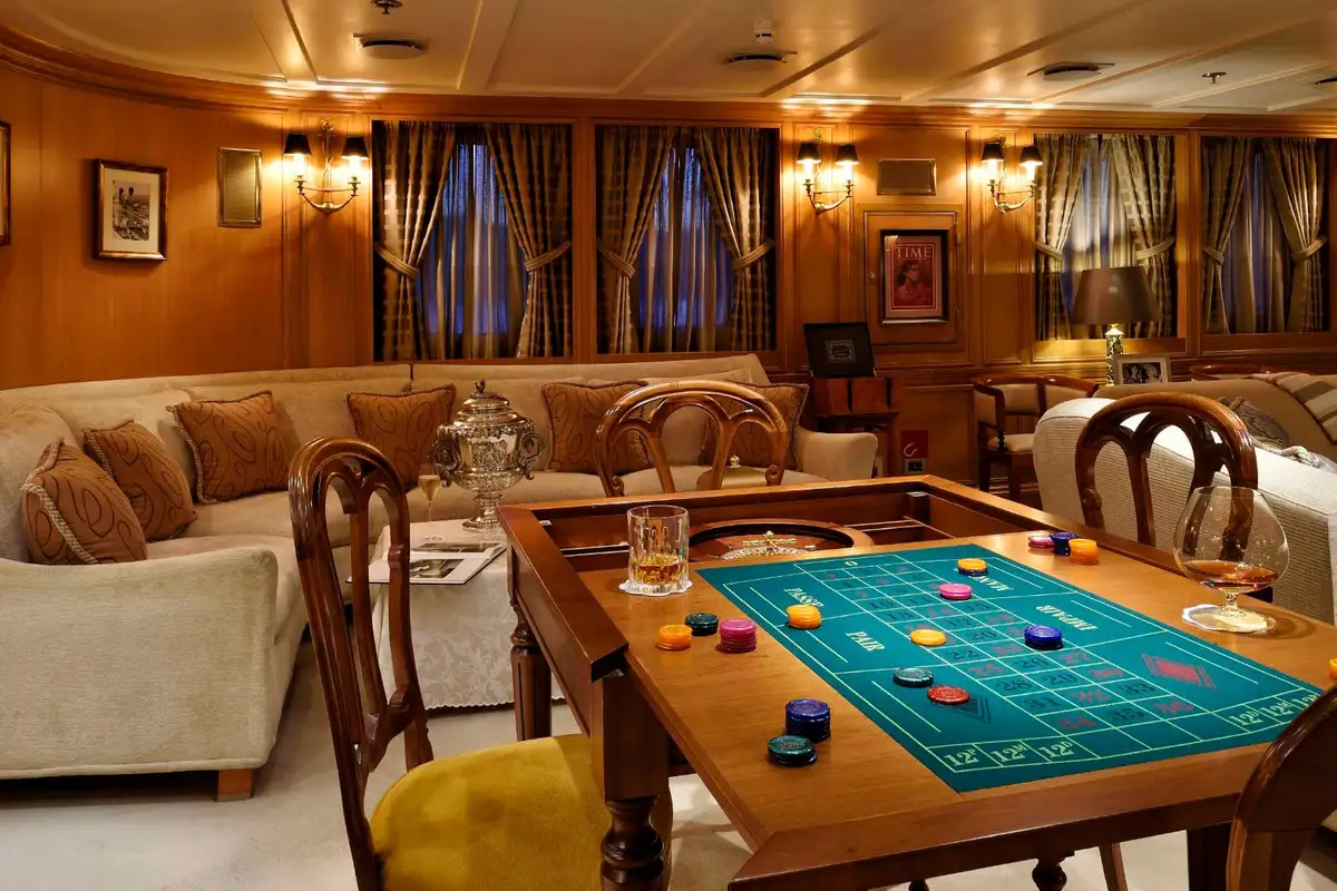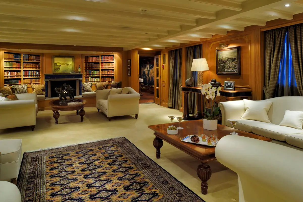 Inside on the main deck you can pick up a classic cocktail at the most famous bar afloat, Ari's, reputed to be built from the wreckage of a Spanish galleon and where JFK and Churchill first met in 1957. A few steps aft guests can live the lounge life with the self-playing piano in the Lapis Lounge, named after the fireplace's surround. After dinner for up to 42 guests, softly entertained by another Steinway, adjourn to the Callas Lounge with Steinway on stage, another incredible entertainment space.