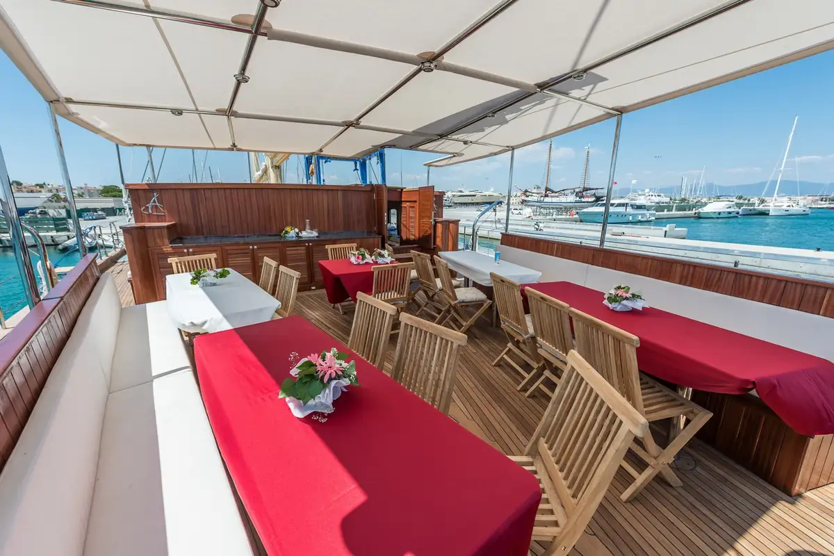 Accessible by tender from your yacht rental to Corfu, Toulas is the gastronomic gem of Agni Bay. With its coastal tables and refined menus, it’s the perfect evening destination.