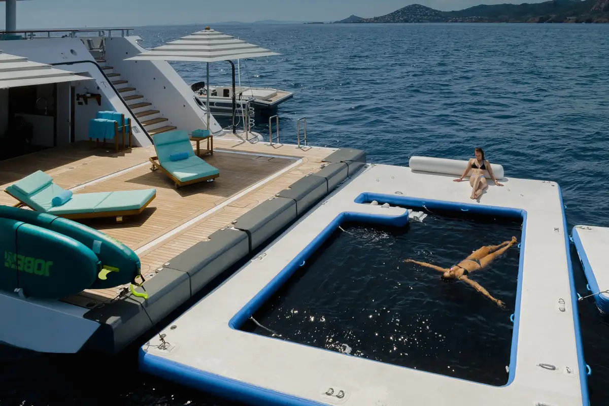 Standout features include a spacious beach club for easy access to the water, a sprawling sun deck with a jacuzzi and gym, and inviting lounge areas designed for relaxation and socializing. Whether unwinding on deck or exploring the Greek coastline, CLELIA III delivers an unforgettable charter experience.