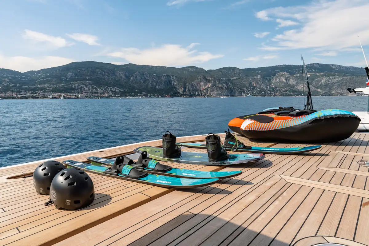 Her main guest tender is a 42ft powerboat with thrilling performance, inside space and a smooth, steady ride. Her list of toys is as long as your arm. She carries fleets of jetskis, SeaBobs, E-Foils, kayaks and boards, plus a great beach setup, sea pool, playground and water slide. You’ll have so much fun on board!