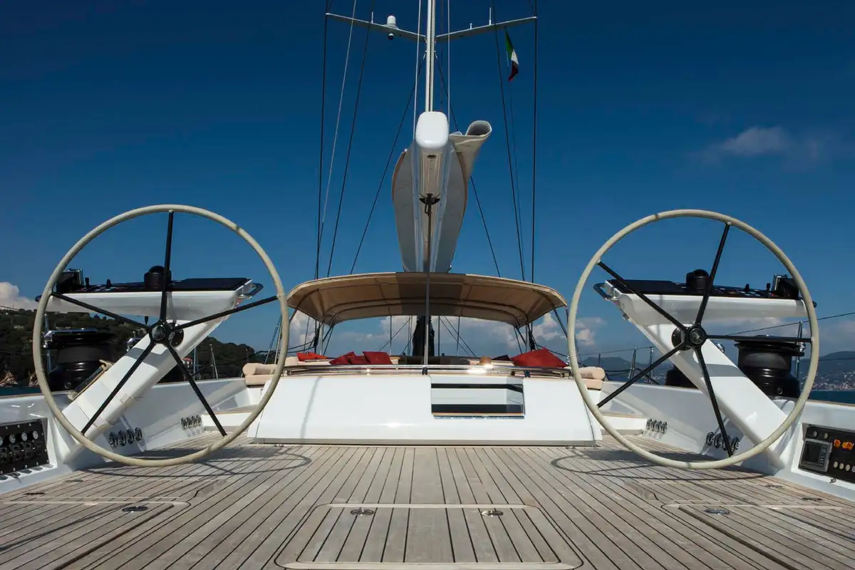 Sail away with speed and style onboard the stunning 31.7 m (104ft) cutter-rigged sloop CROSSBOW. Her flush deck and low coachroof design create a beguiling profile: streamlined, elegant and eye-catching. On board, the lack of deck clutter makes views from on deck fuss-free and far-reaching whether you’re unwinding on deck or in the spacious guest cockpit. With long U-shaped inboard-facing seating, the guest cockpit is the perfect place to experience the power of this gracious yacht. CROSSBOW has a carbon fibre rig to enhance her performance and comfort.