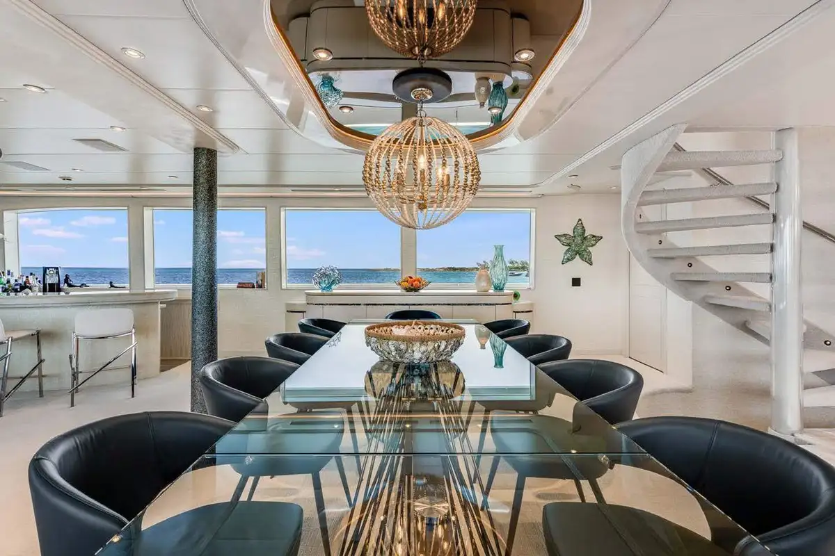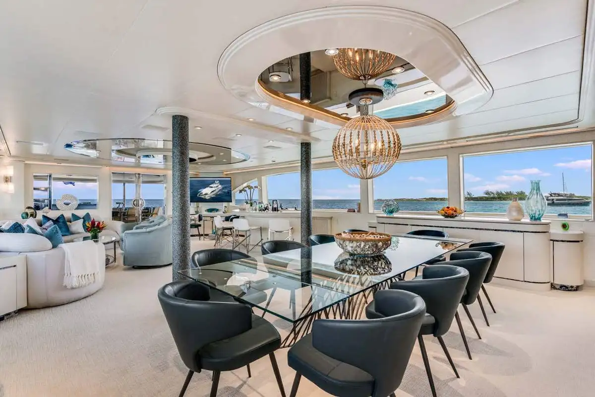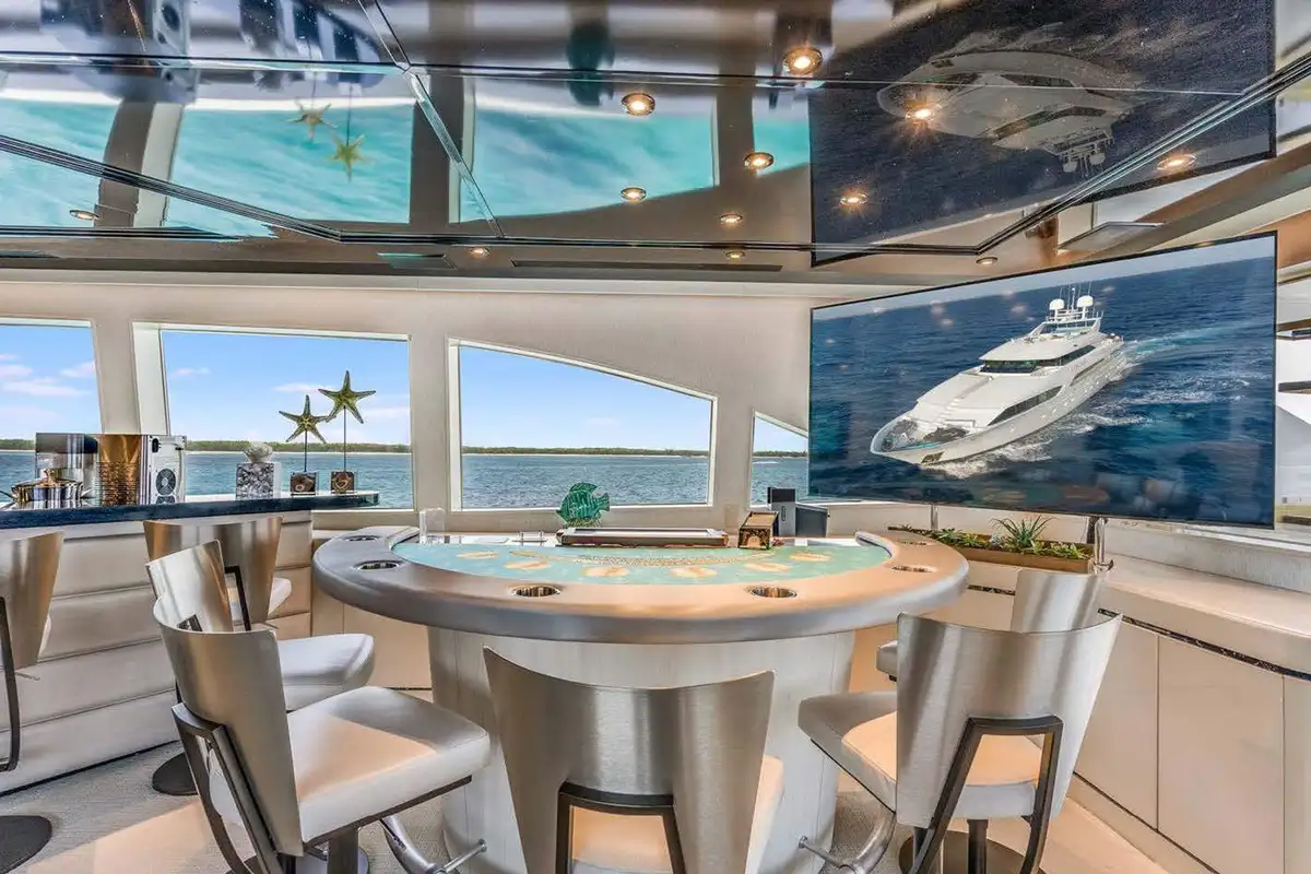 She offers a compelling range of special features, from the custom casino table in the skylounge and the carefully curated interior details throughout the interior, to her astonishingly large collection of watersports equipment, tenders and toys. She’s fitted with powerful stabilisers to smooth her motion whether she’s anchored or at sea, so your comfort on board is assured.