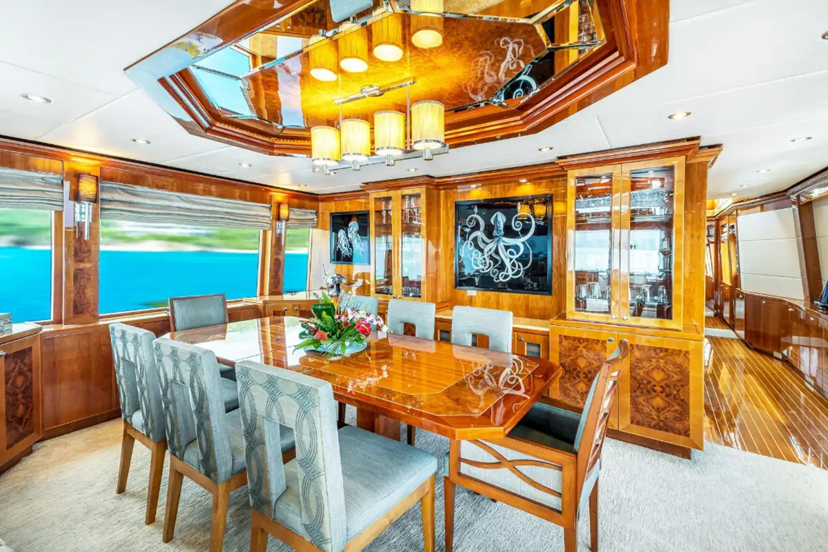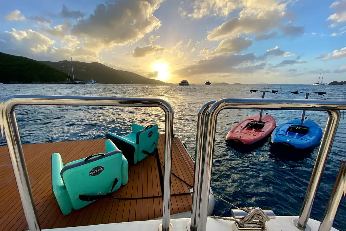 She comes with a 10-metre (32ft) chase boat to ensure swift and comfortable transfers between ship and shore. It’s also ideal for fishing trips, snorkelling excursions, water skiing and inflatable tows. Her other tender is a 14ft RIB and her inventory of small craft includes three jet skis, an eFoil board, two Hobie pedalboards, an aqualung system, a large inflatable platform and more.