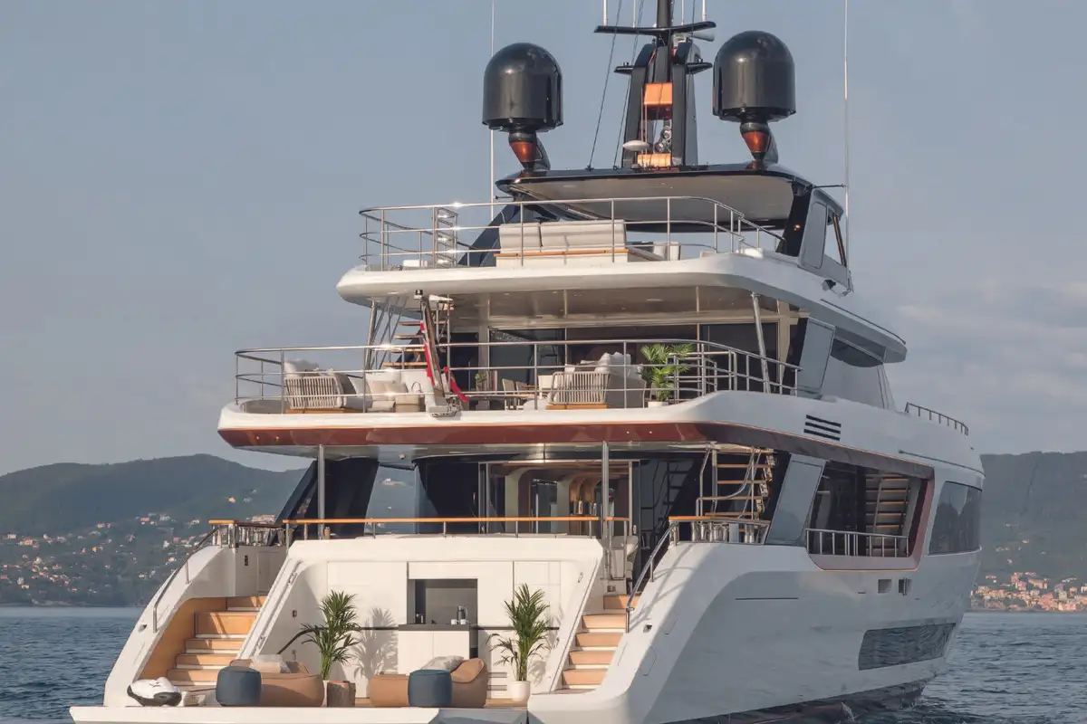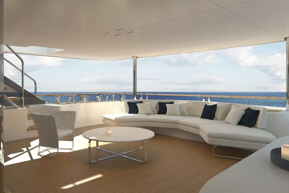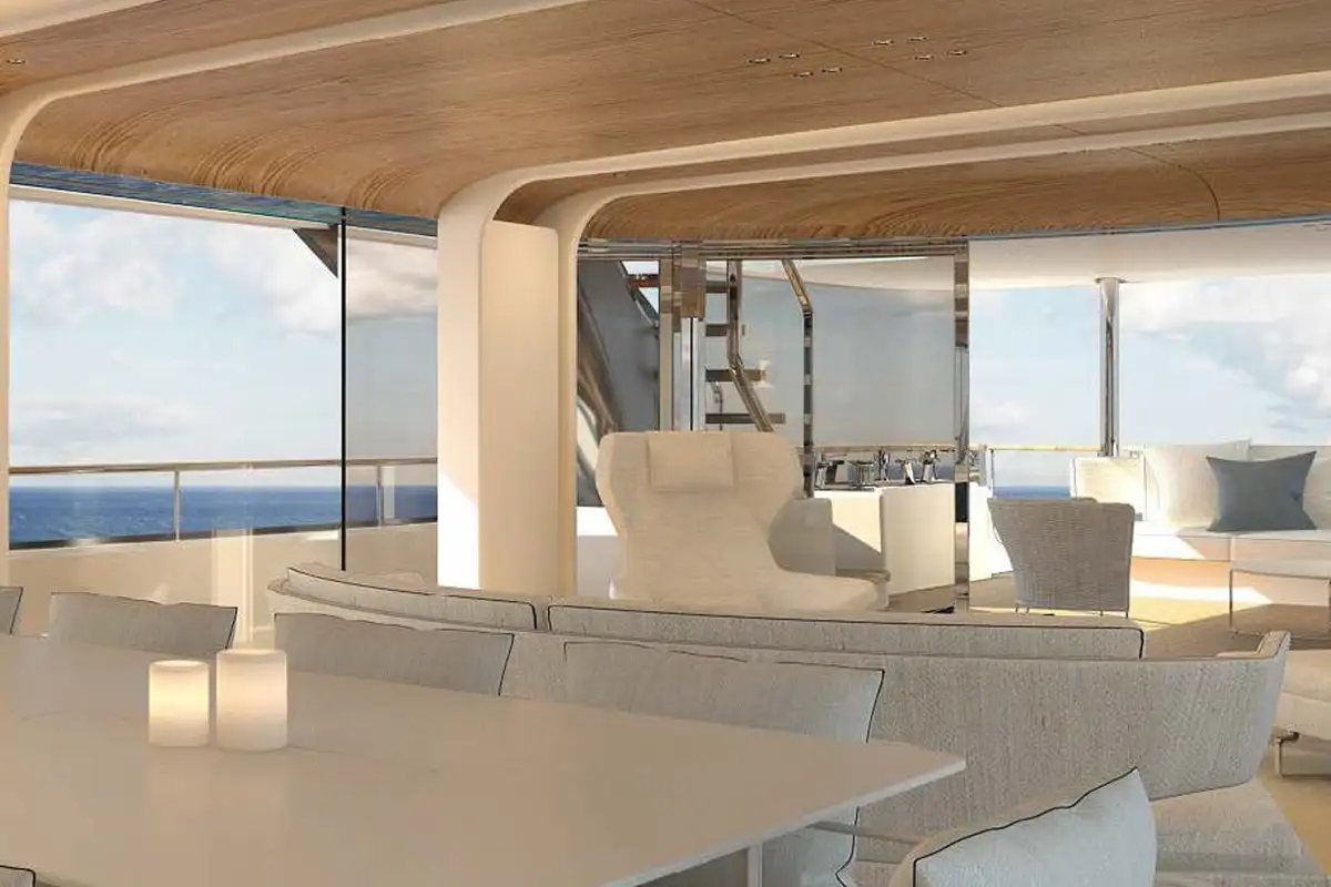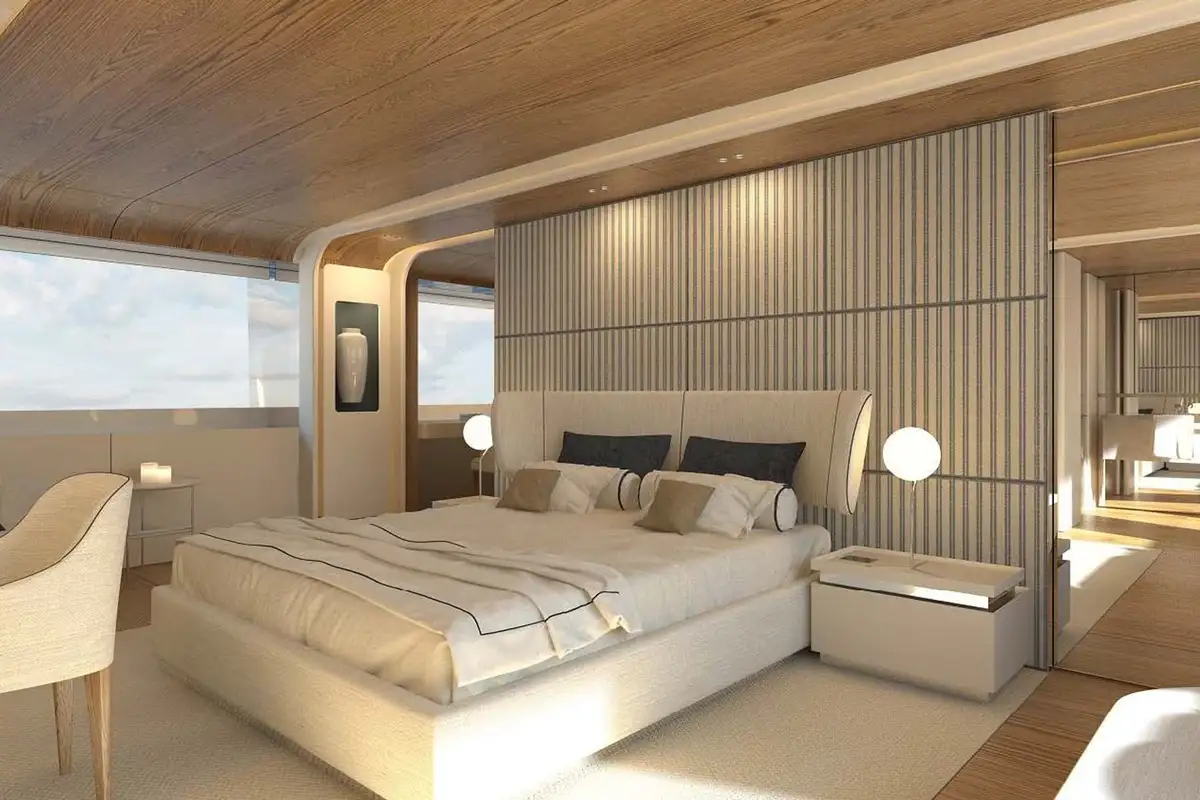 Step on board the breathtaking DAWO 37m (121.4ft), where space and chic design blend with glass and light to create a beautiful yacht and an unforgettable charter experience. From the moment you arrive, you’ll be wowed by everything this recently launched yacht offers. From the lounge to the sky lounge to the master suite, large windows allow natural light to flood the interior spaces with sunlight. Her styling of light furnishing and natural materials, mirrors, and glazing complements the curves in the furniture and the cove headlining.