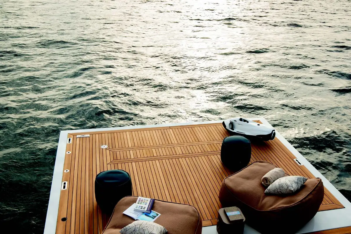 Those searching for action and adventure need not look far. DAWO’s fold-down transom extends the swim platform and reveals a host of watersports equipment. From a jetski, SeaBobs, SUPs and electric surfboards to the collection of towable toys, there’s lots to keep everyone entertained on the water for hours. When you want to explore ashore, the 12.2m (40ft) Venom 40 is on hand for fast transfers.