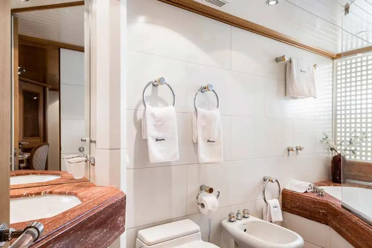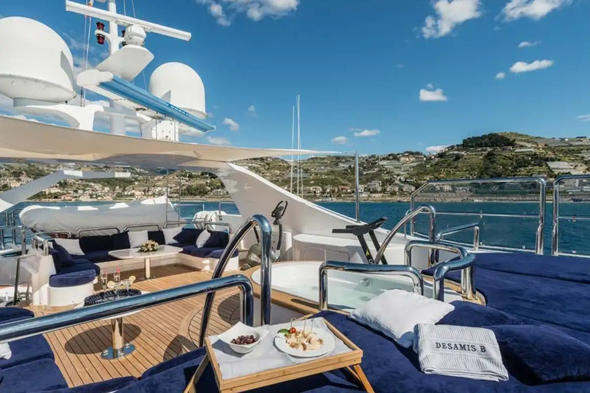 If you’d like the full classic yachting experience with all mod-cons included, look no further than DESAMIS B. This spacious and timeless 40-metre (131ft) beauty from the iconic Benetti shipyard has all the hallmarks of traditional elegance from the graceful flare of her overhanging bow and the solid teak capping rails that accentuate her sheer line, to the covered companionways with sculpted, streamlined mullions – a signature Benetti feature for those in the know.