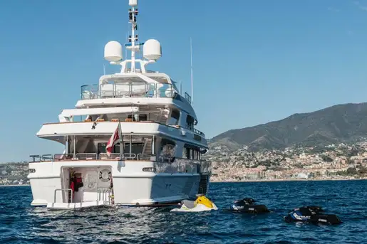 She carries a wide range of small craft and watersports toys. Her inventory includes a two tenders with waterskis and and inflatable tows, a sailing dinghy, a windsurfer, two SeaBobs, two jet skis, a kayak and snorkelling gear.