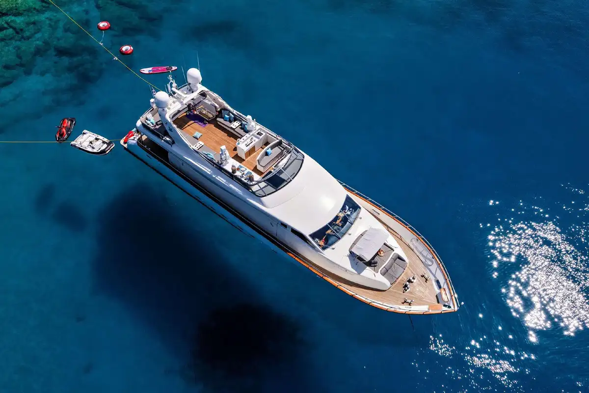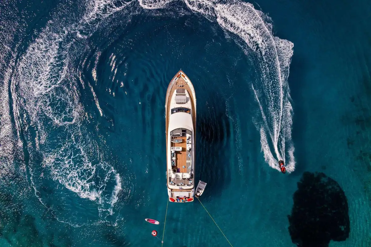 The toys come out when her anchor goes down in a sheltered bay. You can hop on a Sea-Doo jetski for high-octane fun, or don a mask and snorkel to explore underwater with a SeaBob to pull you along. Try your hand at paddleboarding or wakeboarding, enjoy a bouncy ride on an inflatable tow, or step into her jet RIB tender for a beach landing. There’s plenty of fun for all.