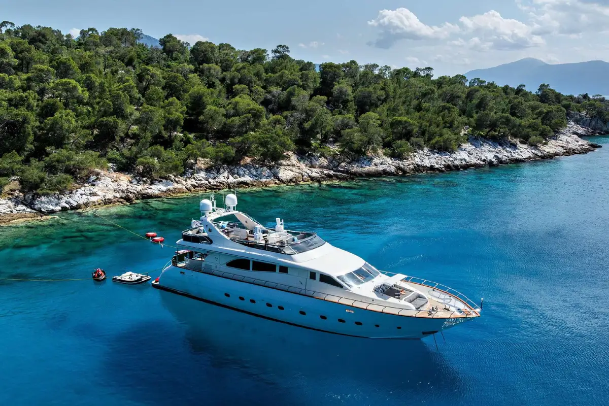 Nearly new, with four comfortable cabins and a larger-than-standard flybridge, DREAM 27m (87ft) is an excellent prospect for a luxury charter holiday in the Mediterranean. This swift and elegant yacht is designed to host up to nine guests on board, with a stylish and welcoming contemporary interior where you’ll feel right at home as you cruise, and some excellent outside spaces to stretch out and relax – or gather together and socialise. She’s offered for charter in pristine condition with a good range of watersports toys.