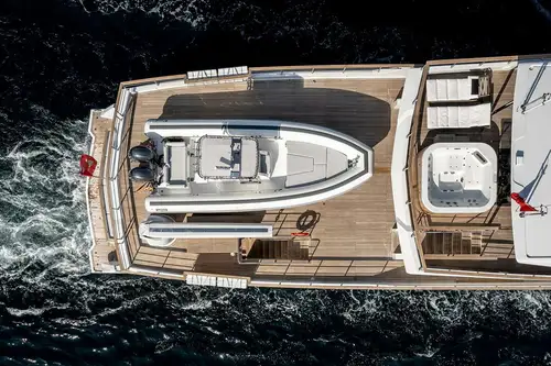You’d be hard pressed to find a better range of tenders and toys on a yacht of this size. There’s a 14m (45ft) chase boat, a 8m (26ft) RIB, seven underwater scooters, three jet boards and a wing foil, five e-scooters, kayaks, paddleboards, inflatable tows, a full beach setup and more.