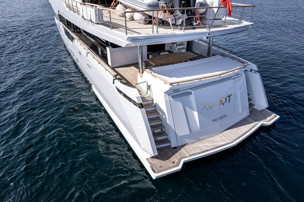 Designed to host 12 guests in six luxurious cabins including a full-beam master suite at the forward end of the main deck, she has a versatile accommodation layout that works equally well for either a family holiday or a cruise with a group of friends. Her stand-out features include the size of her inside and outside lounges, her sharp contemporary style and her amazing inventory of toys.