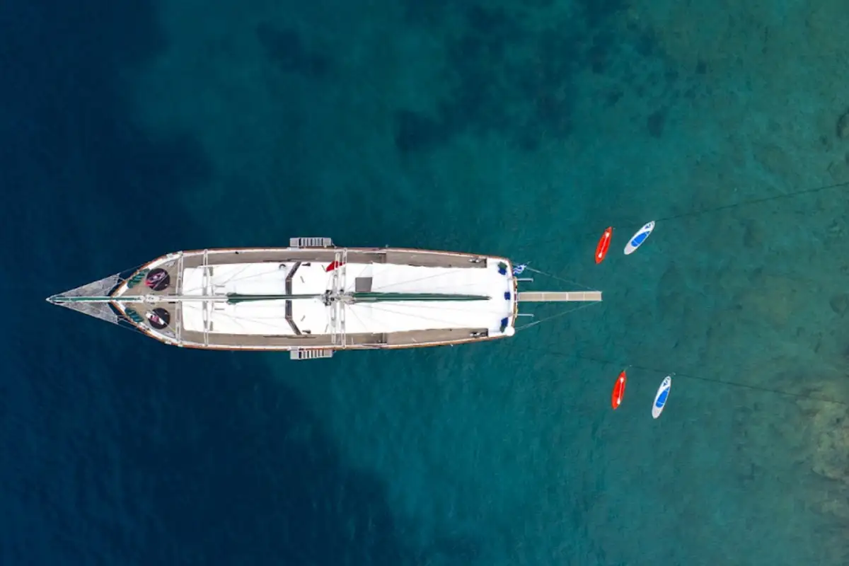For charters that are all about escape, Porto Timoni Beach is the ideal anchorage, as the beach itself can only be reached on foot or by boat. Set sail early during your private yacht charter in Corfu and spend the morning enjoying the crystal-clear waters and soft white sand in almost perfect peace and quiet.