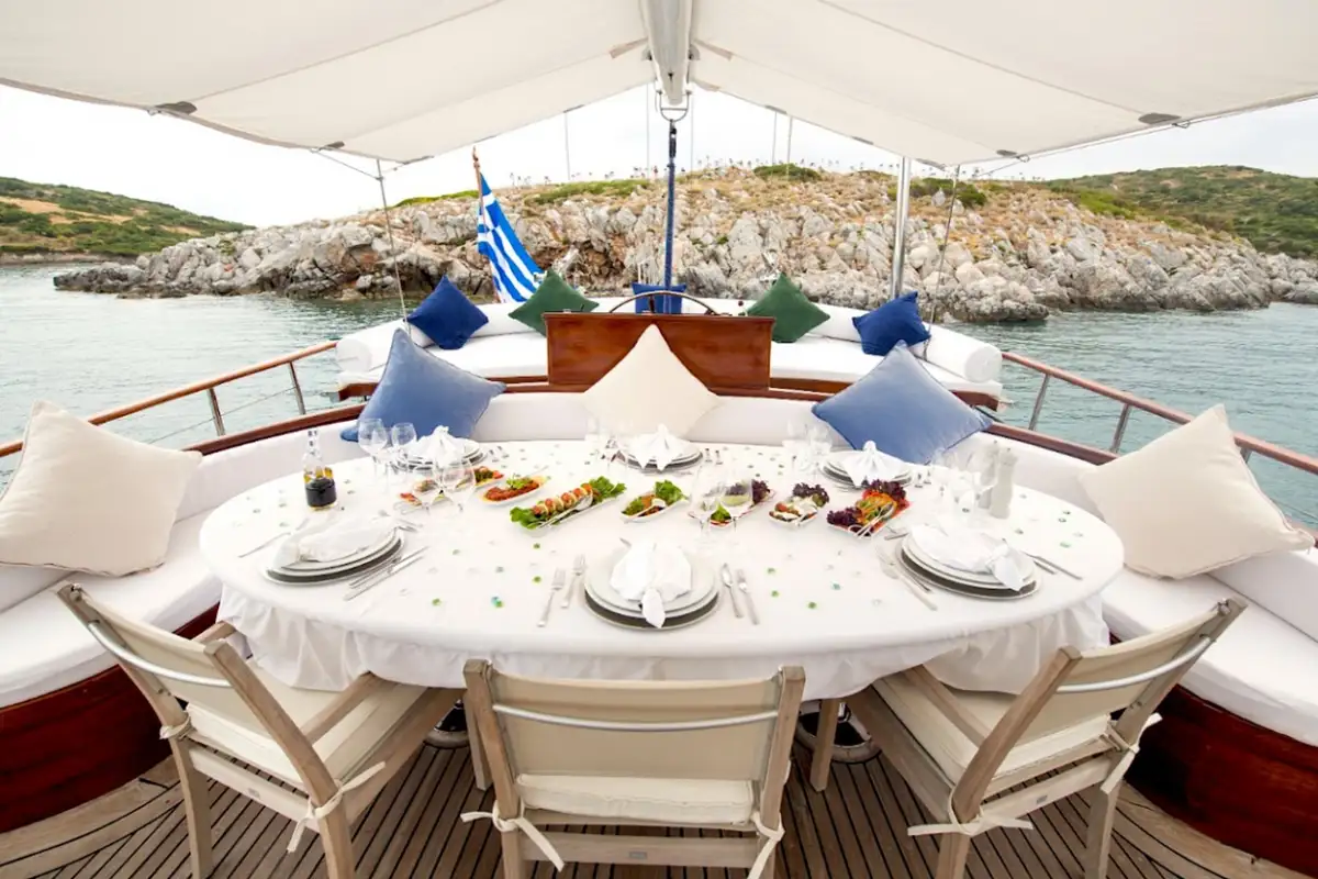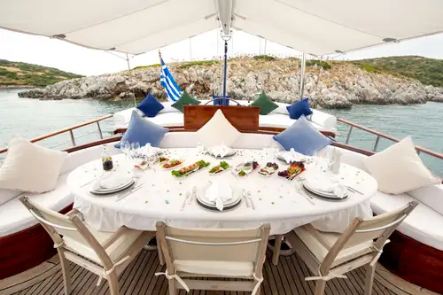 Accessible by tender from your yacht rental to Corfu, Toulas is the gastronomic gem of Agni Bay. With its coastal tables and refined menus, it’s the perfect evening destination.