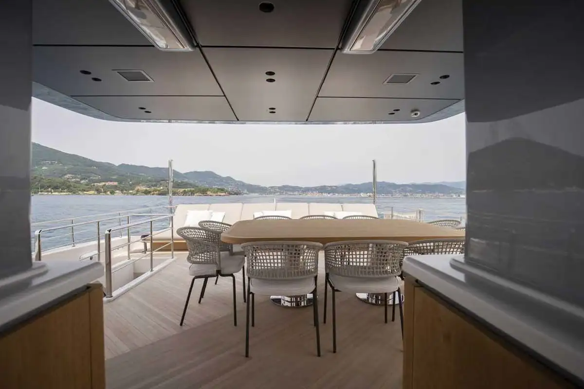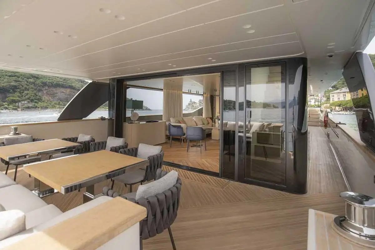 The Sanlorenzo SD90 EM3 is a 27.43 m luxury motor yacht for charter designed to provide the highest standards of liveability with new solutions introduced both externally and internally that give a totally revised perception of space. The exterior design, penned by the Zuccon International Project studio, is the result of a complex stylistic research that finds a perfect balance in the shapes and volumes.