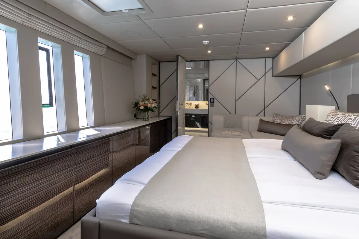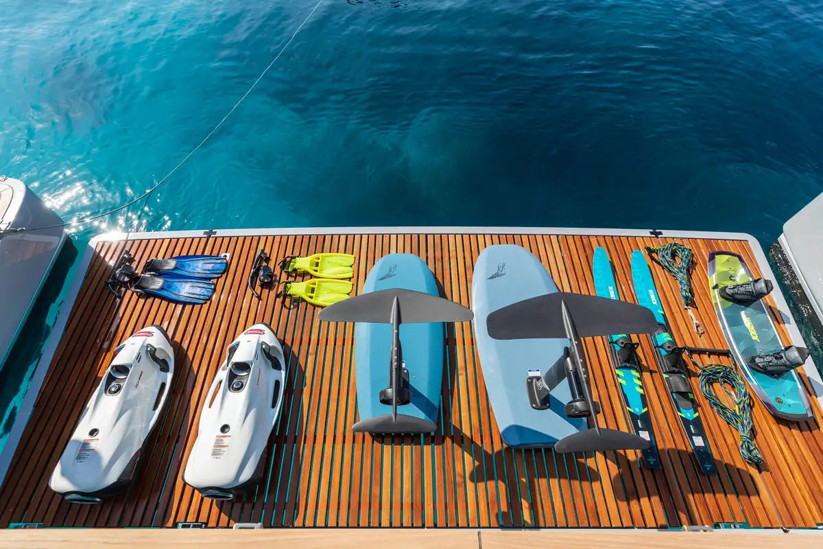 A perfect arc of sand, all but inaccessible by land, fire up the tender, explore the reef, then enjoy a BBQ on the beach with the sand between your toes.