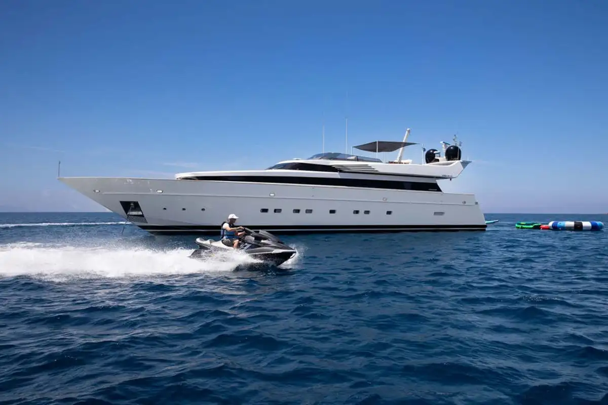 The crew of ENERGY 33.6m (110.3ft) welcome you aboard this striking yacht. Whether you’re plunging from the sundeck on the waterslide or relaxing in your full-beam master suite, they are on hand night and day to ensure you have the very best experience. Built in 2001 and refitted in 2023/24, ENERGY is in outstanding condition and is perfect for groups of friends and family.