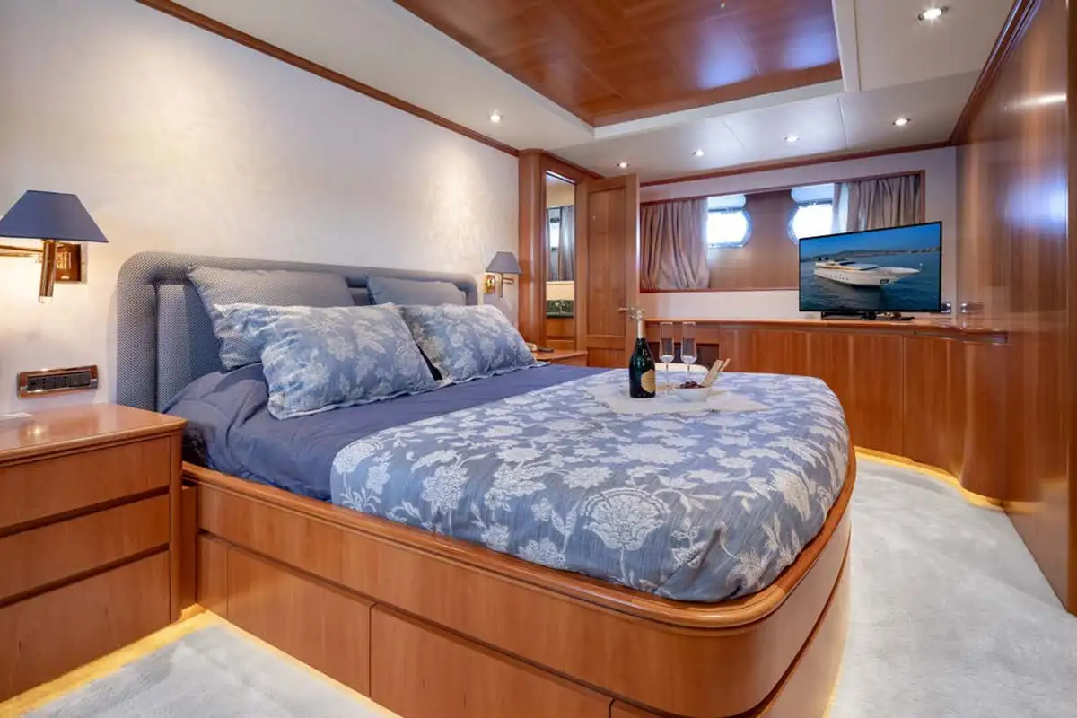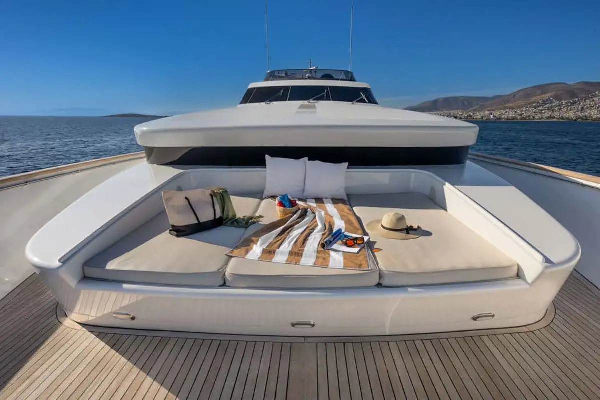 When it comes to ways to keep entertained, you are spoilt for choice on ENERGY. As well as the sundeck waterslide, there’s a jetski, a SeaBob, two SUPs, waterskis, a wakeboard, and a selection of towable toys. On the main deck, in the lounge, there’s a TV for sports and movies, and for sun worshipping, there are plenty of sunpads and sun loungers. The foredeck features a delightfully secluded sunpad that isn’t overlooked, situated below the high bulwarks, it ensures total privacy. On the sundeck and in the cockpit there are al fresco seating areas to catch up on conversation, enjoy cocktails or just relax and take in your beautiful surroundings.