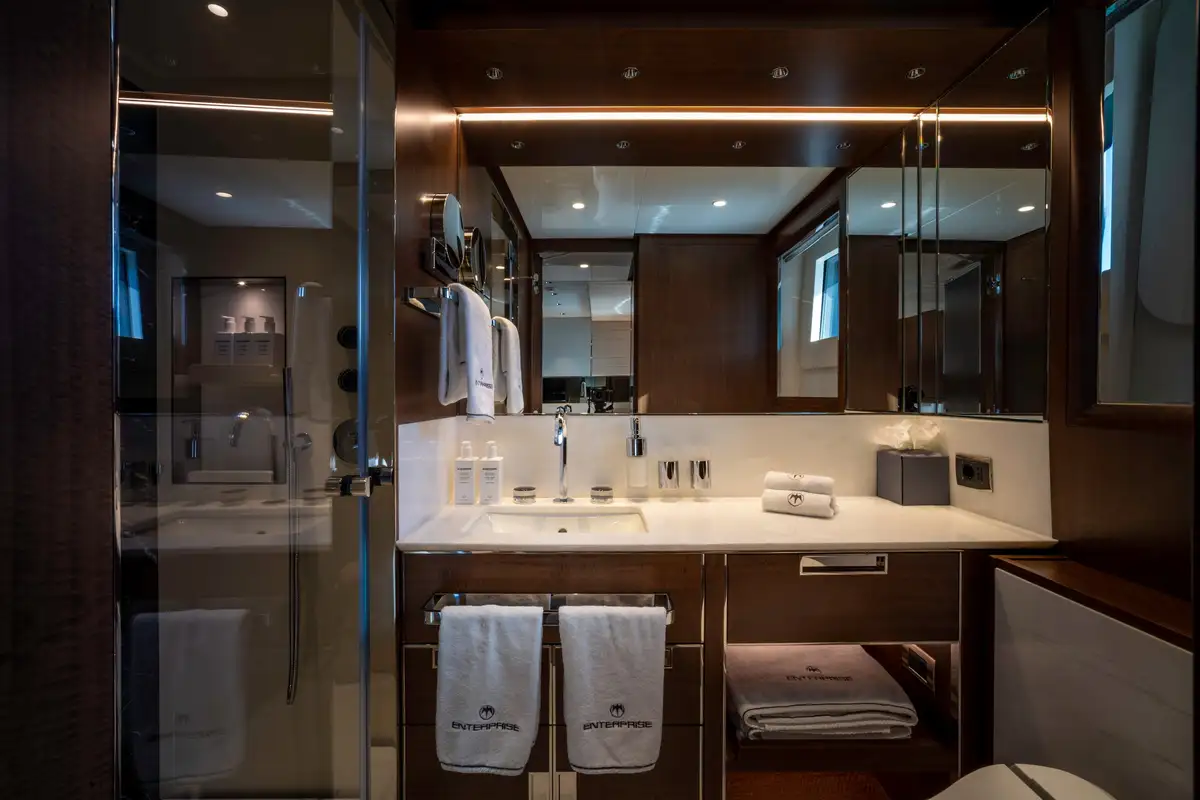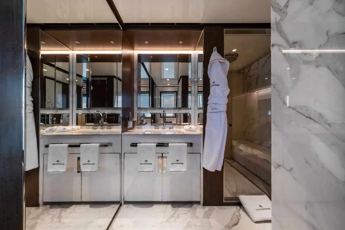 When it comes to fun on the water, she has plenty of toys including a WaveRunner, two SeaBobs, paddleboards and lots of tow toys, as well as a 14m (46ft) Maori chase tender to get you ashore and let you explore. ENTERPRISE has it all!
