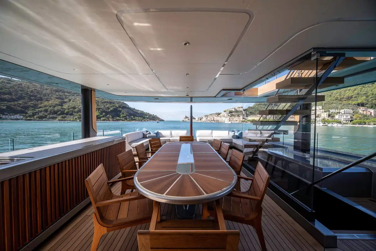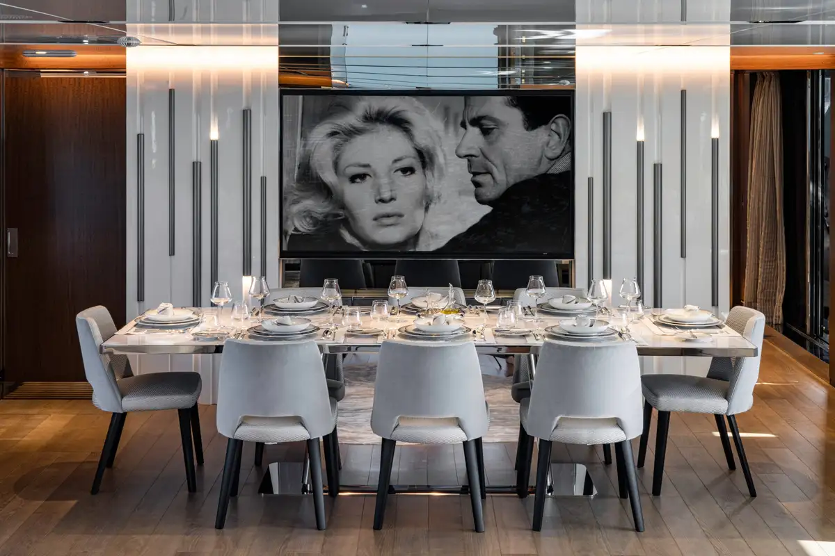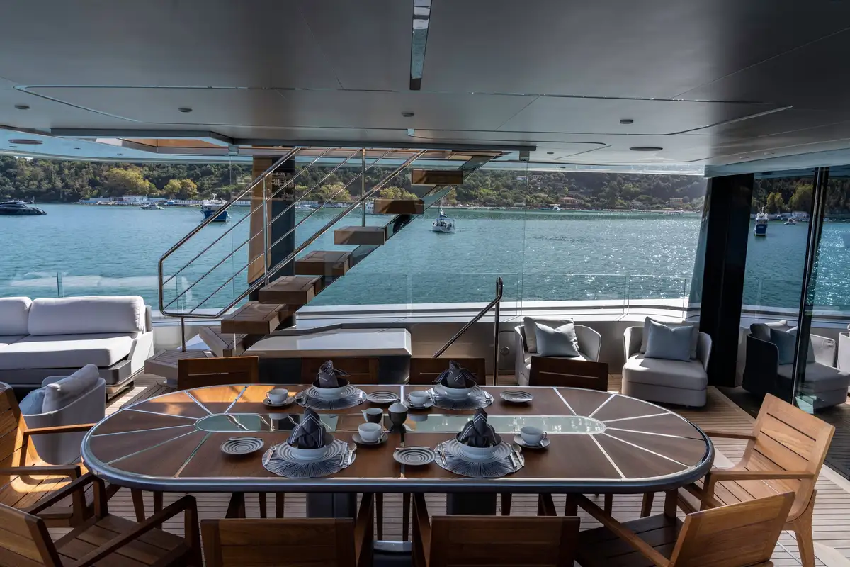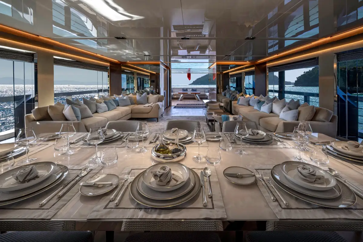 From the main deck dining salon to her al fresco bridge deck and sun deck dining areas, she has numerous options for both informal entertainment and sophisticated spaces to enjoy sublime cuisine from the superb chef.