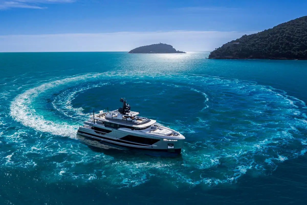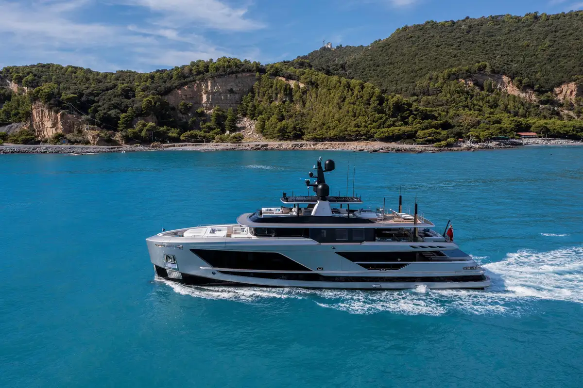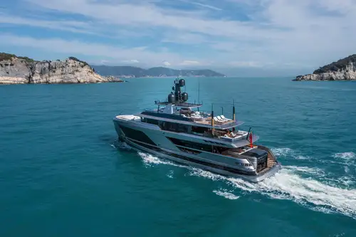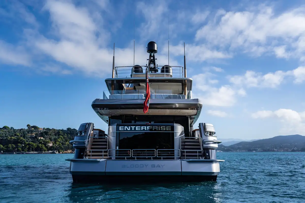 The impressive 38.1m (125ft) Baglietto ENTERPRISE is an exhilarating addition to the charter market. Bold, strikingly contemporary and light-filled interior, with an eye-catching silver hull, offer a glimpse of her destiny to be a stellar charter yacht.