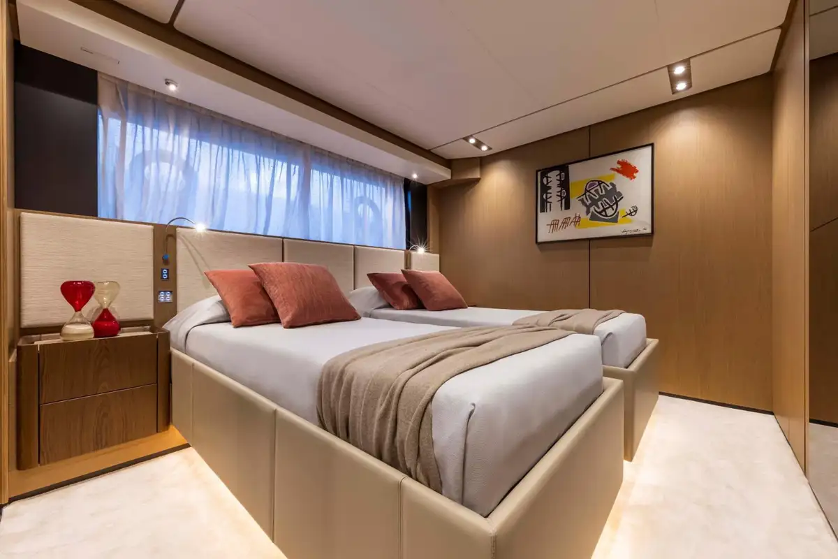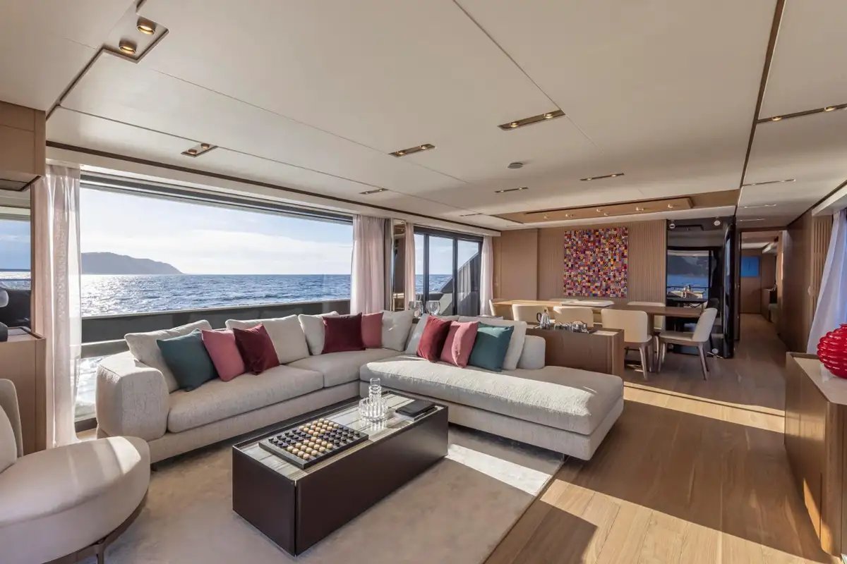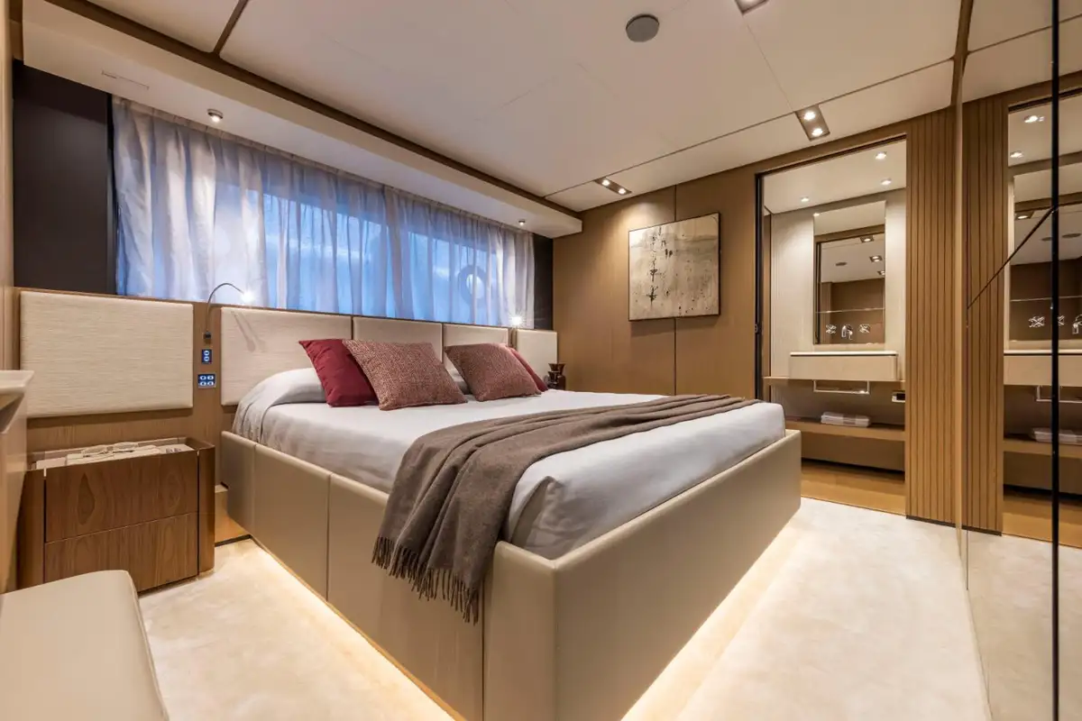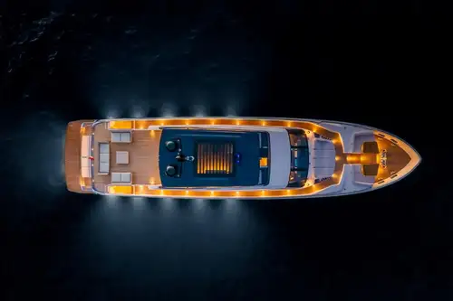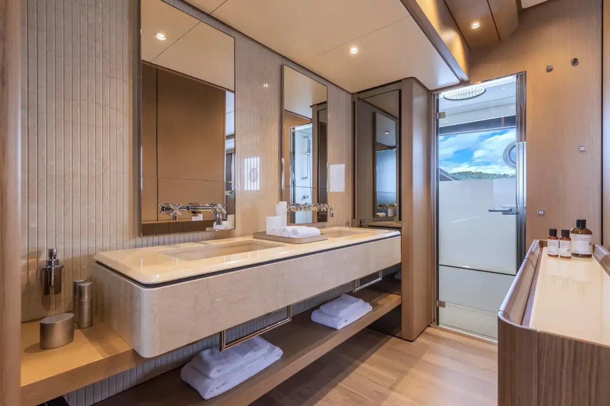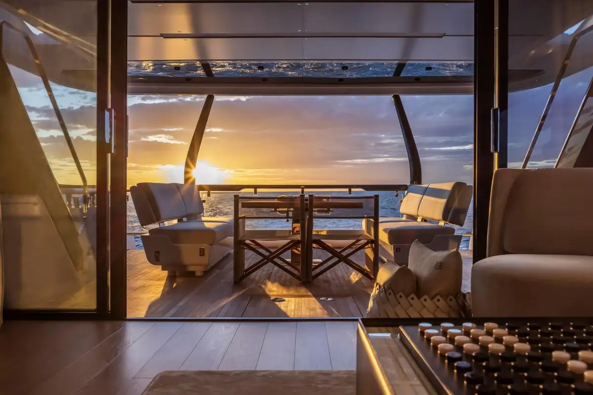 The Charterers and their guests can enjoy complete privacy and make the most of the exterior thanks to an extremely innovative and practical aft beach area and a spacious flybridge that is connected directly to the forward section.