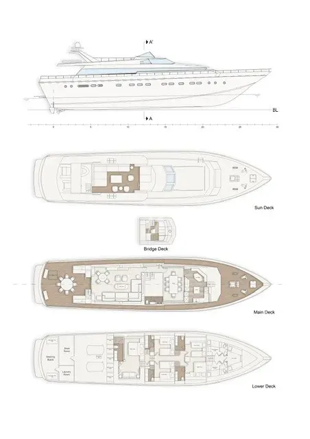 An iconic design classic from the 1980s, ERA A 31.8m (104.5ft) stands out from the crowd of charter yachts with her sleek, low-slung silhouette and sharp, purposeful exterior lines. Once on board, you’ll quickly notice that she’s been refitted and upgraded to an immaculate standard with all new furnishings throughout her spacious interior. Cool, clean and bright, this is a fine example of how a yacht’s essential character can be preserved – and indeed enhanced – while raising the levels of luxury and comfort that she offers.