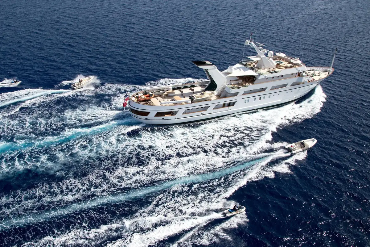 ESMERALDA harks back to a golden era of superyachts and, thanks to her high-bulwarked side decks, at 61.5m (201.8ft) she has a modest ship-like feel when stepping aboard. From the moment you do, her long-serving and highly experienced crew will be on hand to make your holiday on this grand lady exceedingly special.