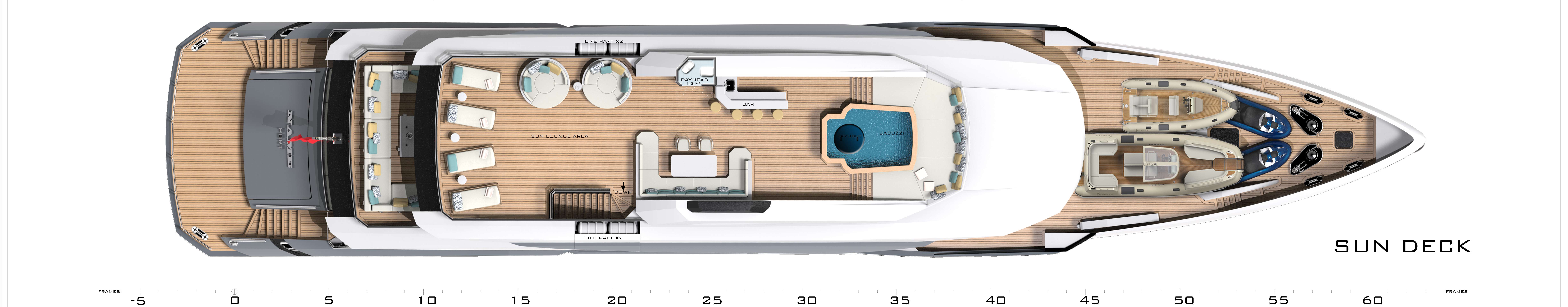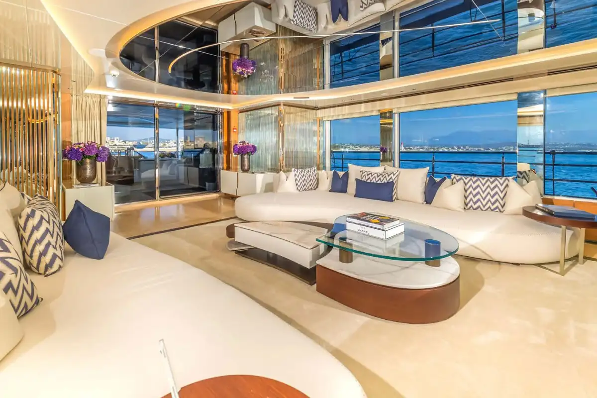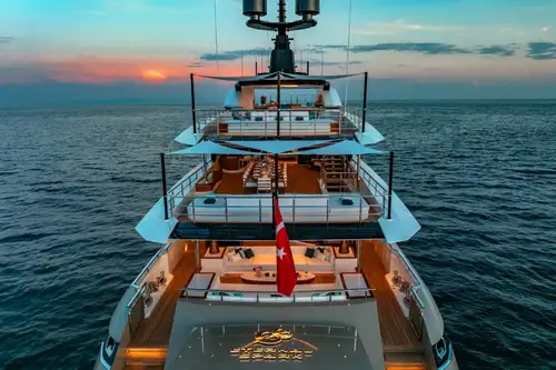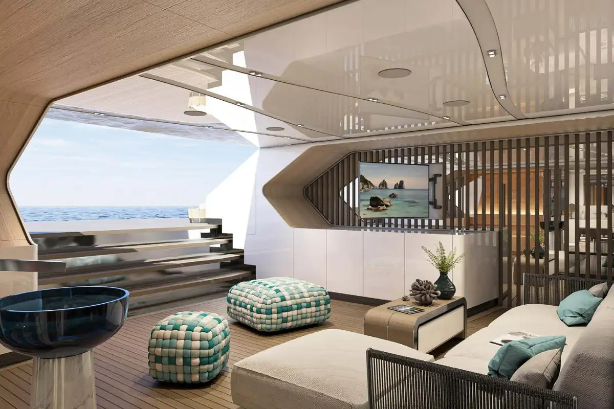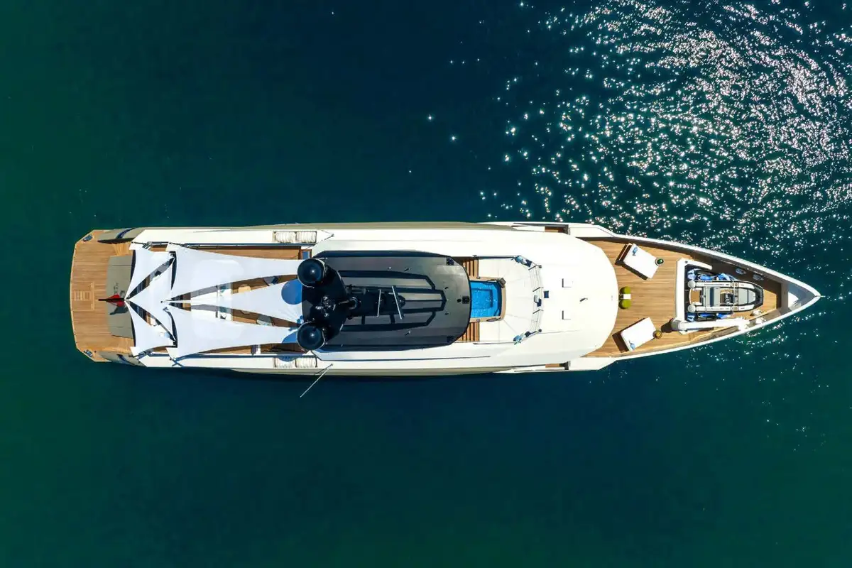 For lunch, you and your guests head up to the upper deck aft dining area, shaded from the midday sun by the deck above. From one anchorage to the next, you can catch a movie in the cinema, enjoy a soak in the glass-baked jacuzzi, relax on the main deck aft lounging area or watch the Mediterranean scenery drift by from the foredeck sofa and sun pads.