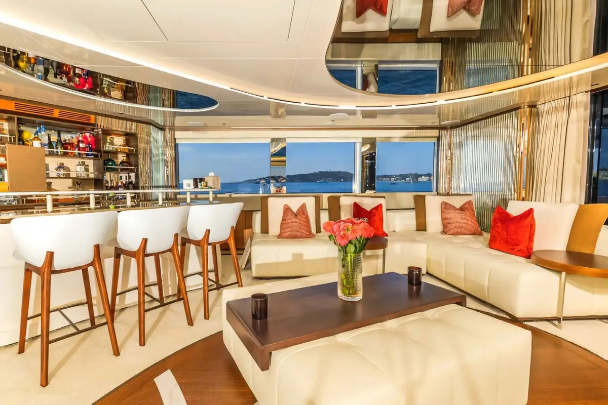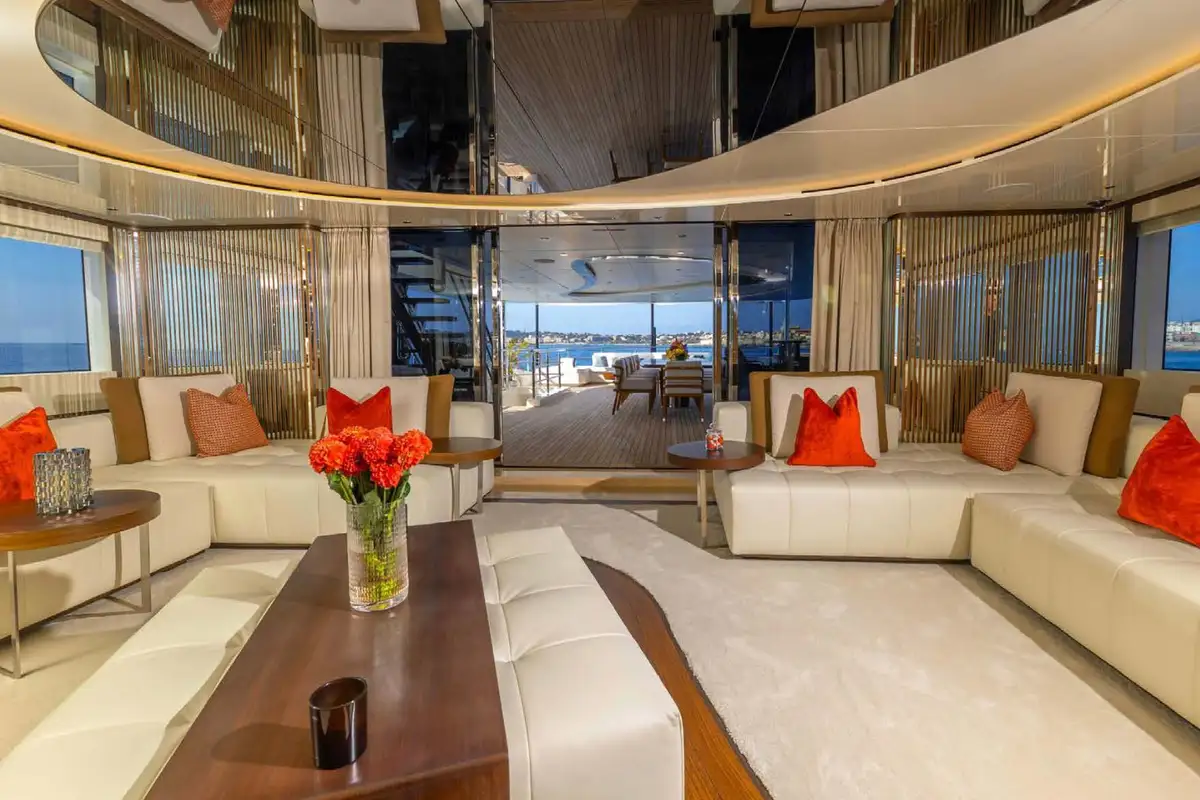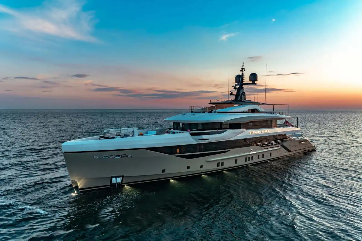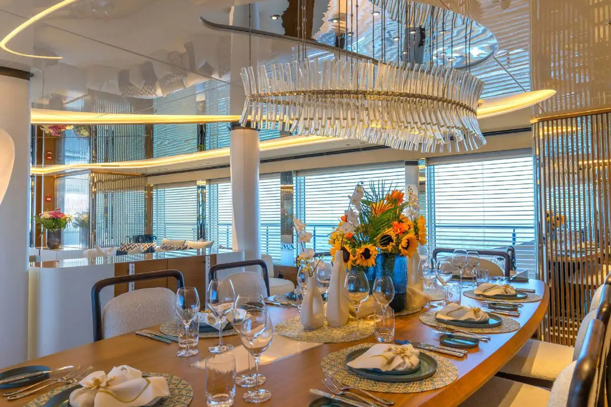 If you want to make a statement to your guests, this is the yacht for you. Delivered in 2024, ETERNAL SPARK features playfully bold, contemporary interiors with asymmetric spaces, lots of polished steel, strong colours and plenty of glass.