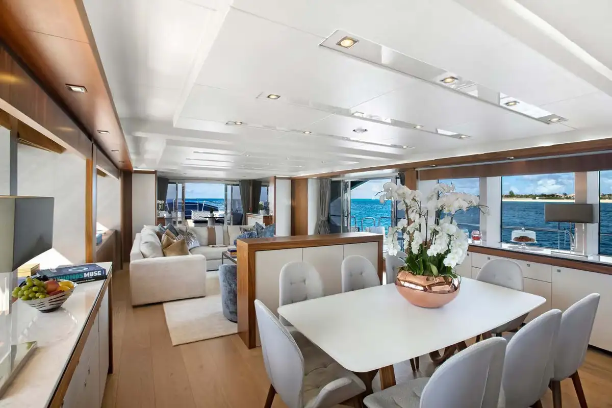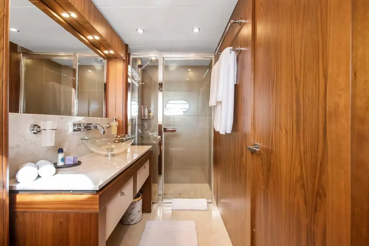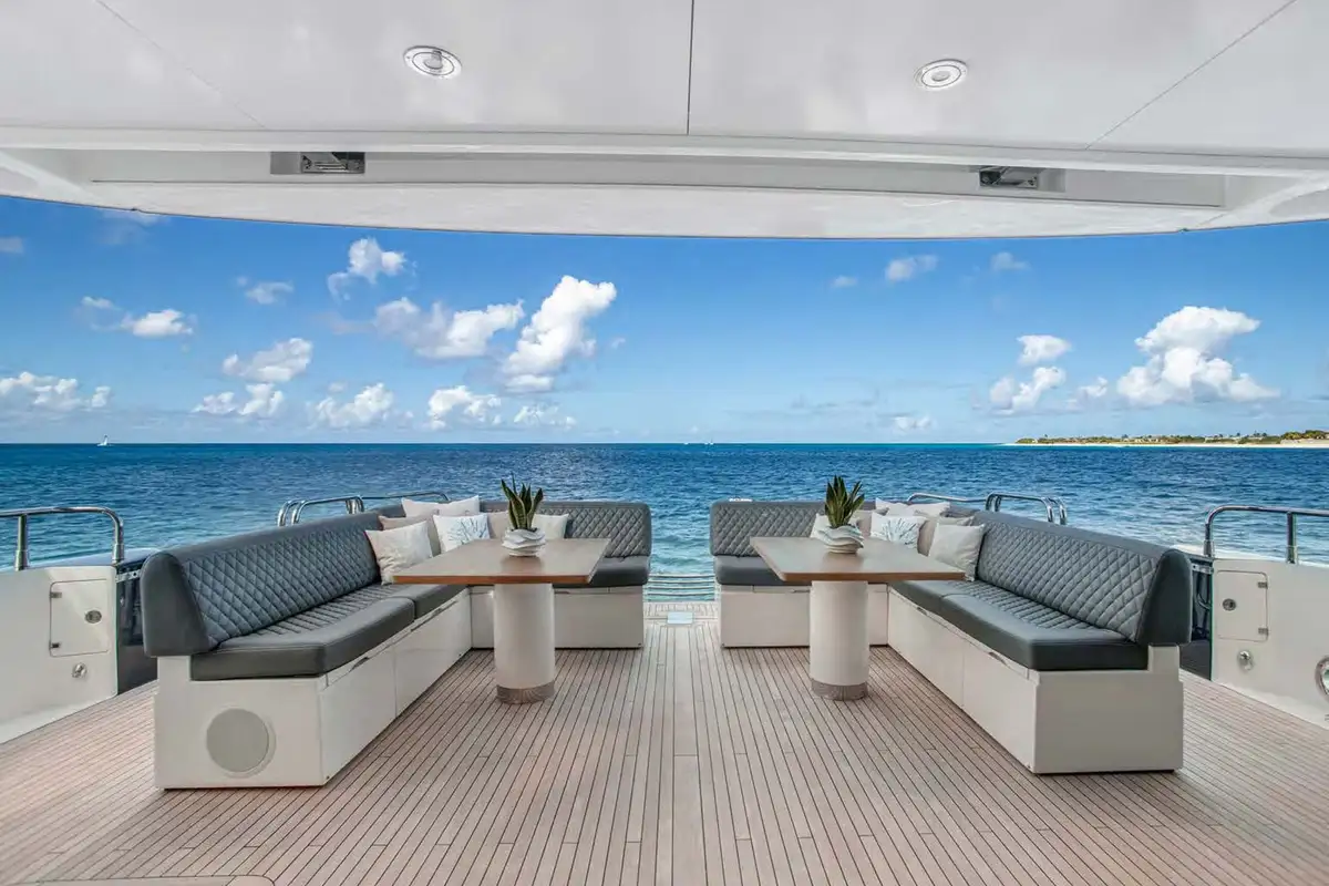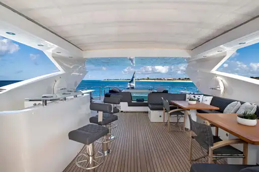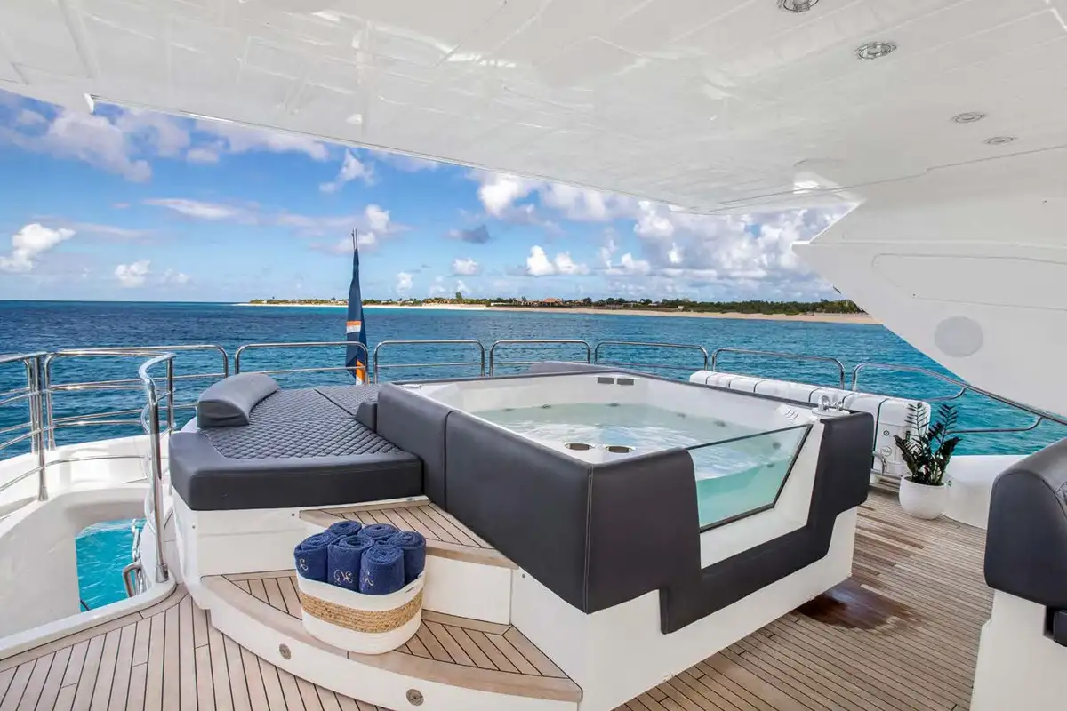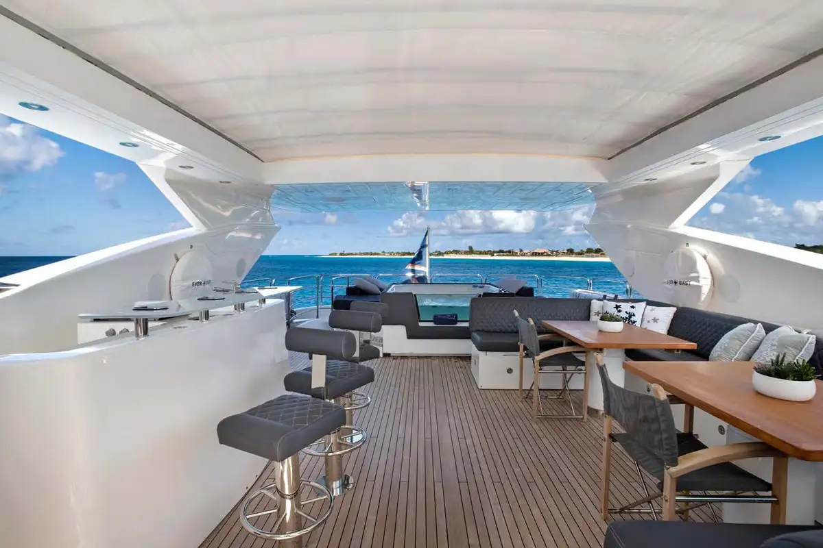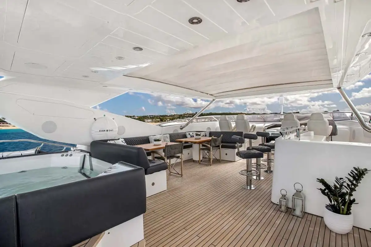 EVEREAST is an outstanding Sunseeker Sport built in 2013 and refitted inside out 2022. The yacht’s interior and exterior has been upgraded to provide a homely and comfortable atmosphere. She sleeps up to 11 guests in 5 beautifully appointed staterooms. There is a great team of 6 Crew onboard to ensure a relaxed charter experience. Her generous deck areas offer a wide range of amenities, including an outdoor bar located on the sundeck, three alfresco dining options and a large jacuzzi.