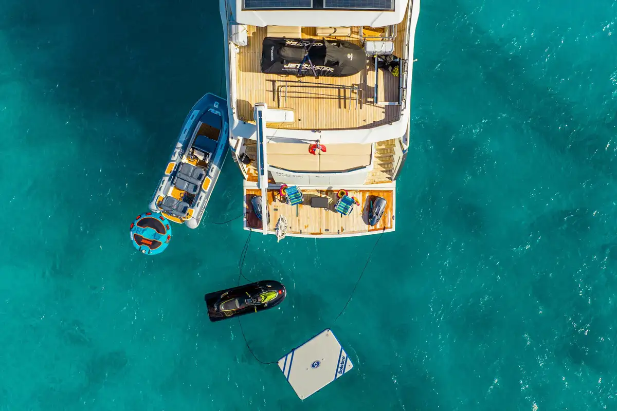 A perfect arc of sand, all but inaccessible by land, fire up the tender, explore the reef, then enjoy a BBQ on the beach with the sand between your toes.