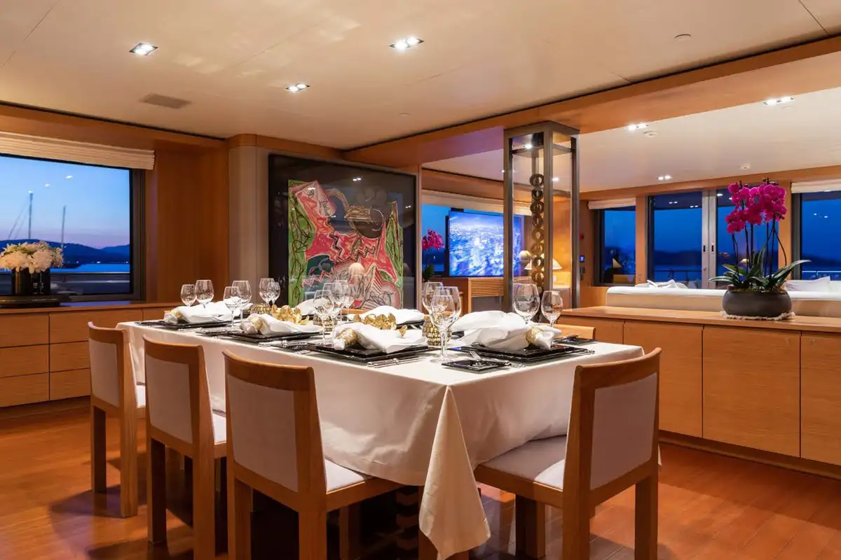 Built for an experienced owner by the Italian Picchiotti - Perini Navi shipyard in collaboration with designer Philippe Briand, she spent her first five years circumnavigating the world and has proven herself as a go-anywhere yacht. With her aluminium hull and sleek lines ensure less water resistance underway and therefore lower fuel consumption. Added to this, she has shallow draft, allowing guests to access waters that larger yachts cannot explore.