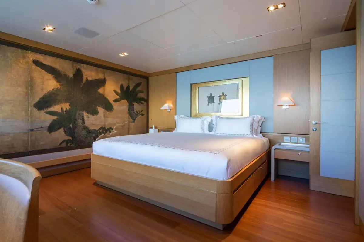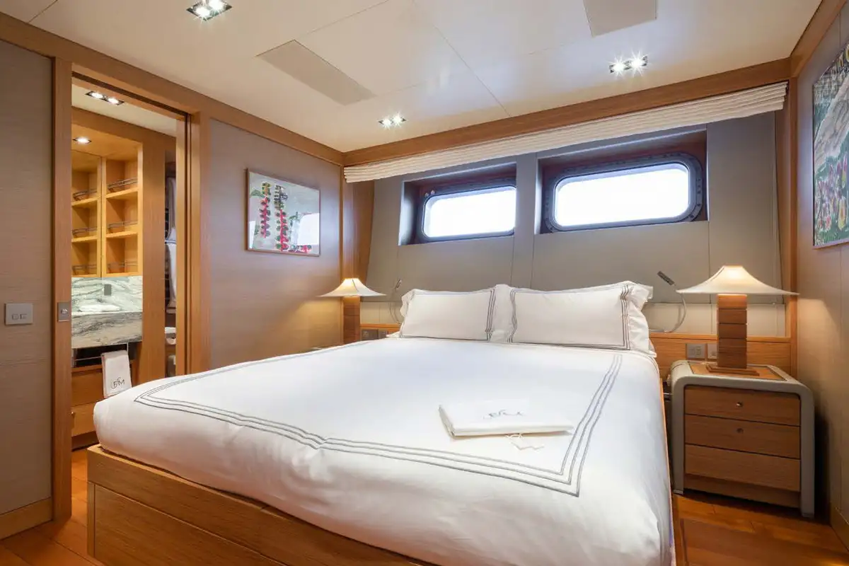 Come the afternoon and FALCO MOSCATA really comes into her own. Whether you are looking for some fun on the water, or on land, FALCO MOSCATA’s impressive toy collection includes an amphibious jeep, perfect for exploring the interior of the islands in which you are cruising. One evening you could even stay ashore to enjoy a beach barbecue set up by FALCO MOSCATA’s enthusiastic chef. When the night comes to an end, guests can retire to one of three well-appointed cabins on the lower deck, while you head to the main deck master stateroom. For those with young children, the master also has a small cabin adjacent, providing the perfect retreat to encourage slumber.