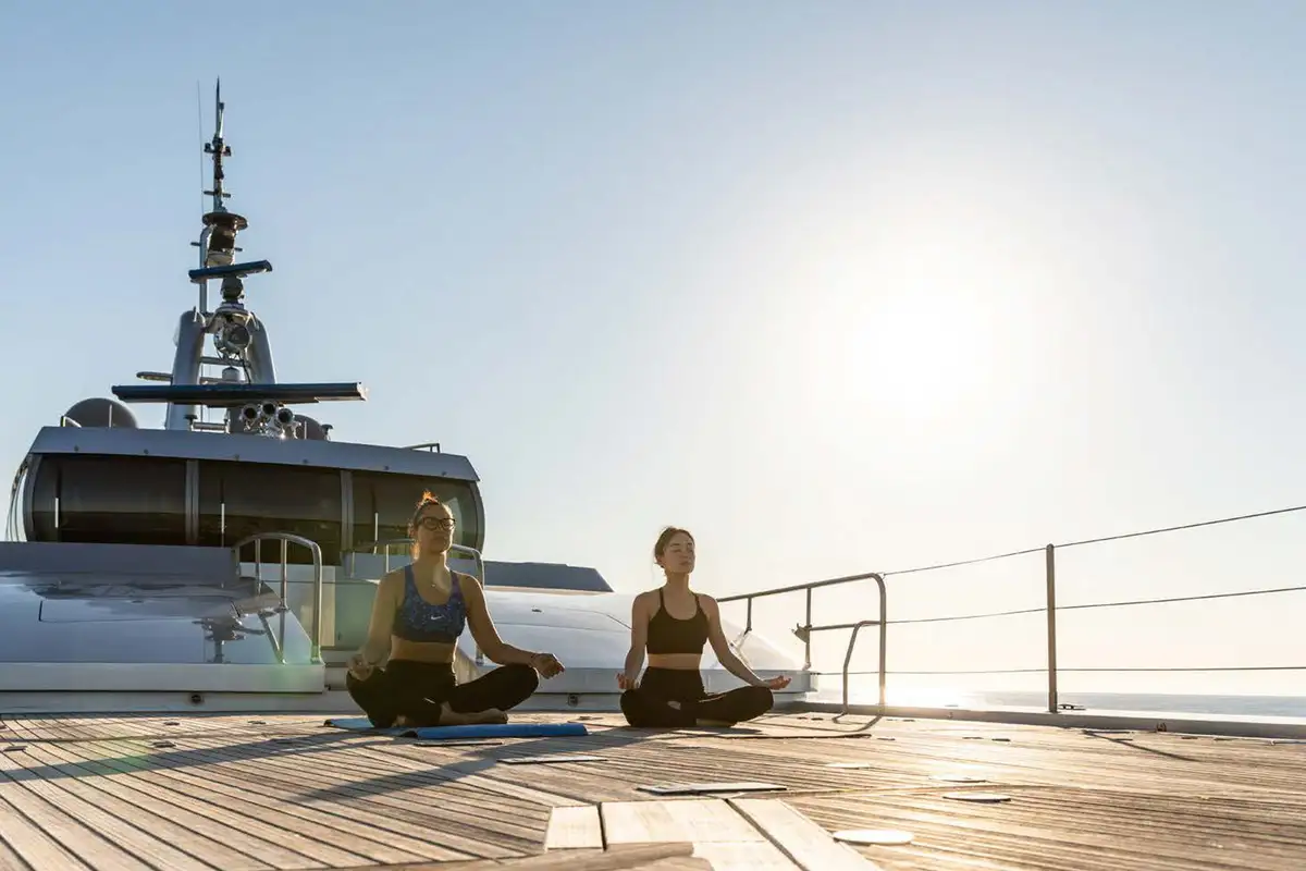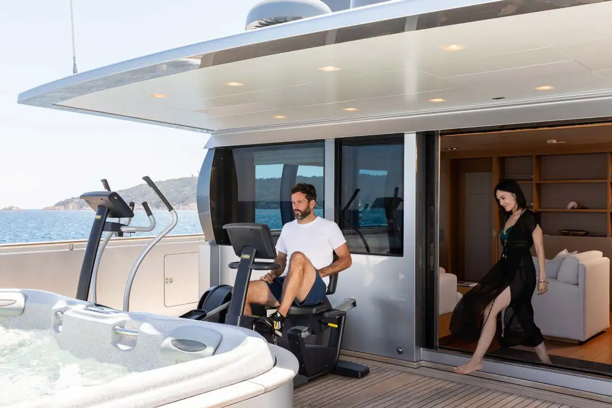 Begin your day with an early morning yoga session on the foredeck or a workout in the lower deck's dedicated gym, before enjoying breakfast with a 270 degree view on the main deck aft. FALCO MOSCATA may have been built with exploration in mind but this doesn’t detract from her luxury offerings, of which she has many. Whichever deck you choose to spend time on, you will be ensconced in sumptuous surroundings. The upper aft deck is the perfect place to catch some morning rays on the comfortable sun pads, taking an occasional dip in the jacuzzi. Other guests might choose to relax on the large main deck aft where sunloungers sit in front of a shaded seating area – also the ideal spot for an al fresco lunch.