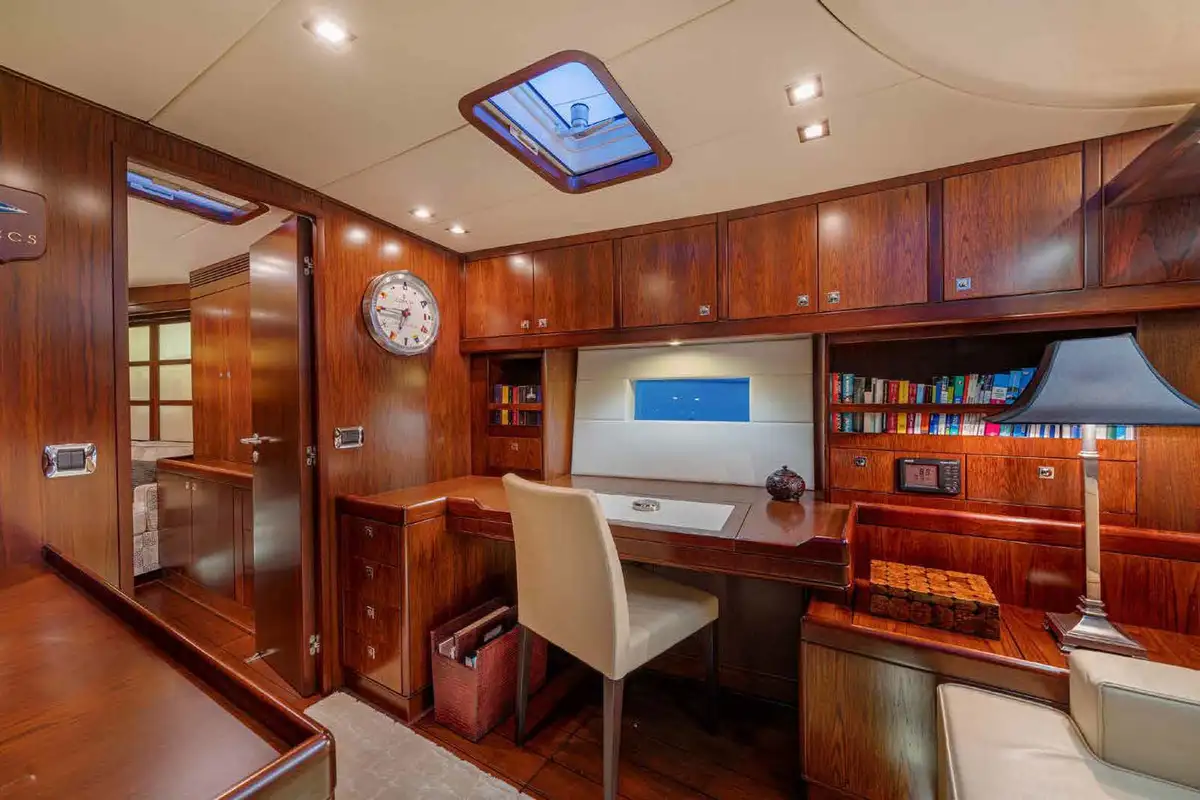 Backed by hills and vegetation, this picturesque beach is popular with visitors. There are other small coves barely accessible on foot but easy to reach by tender, ideal for privacy.