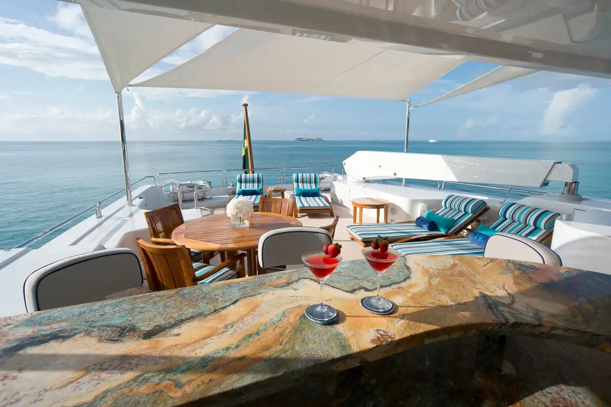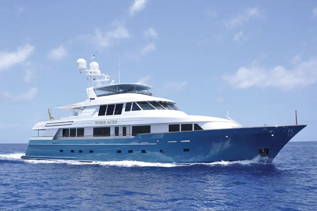 If you’ve ever dreamed of voyaging to distant, sun-drenched shores with a cocktail in hand and a tropical yacht rock soundtrack from Jimmy Buffett, this one is for you. FORE ACES was Jimmy’s own private yacht and his muse in later life – she is the quintessence of the Caribbean cruising lifestyle. All of that aside, she’s an elegant and tasteful 38m (124ft) tri-deck yacht with some excellent features and a unique, easygoing charm.