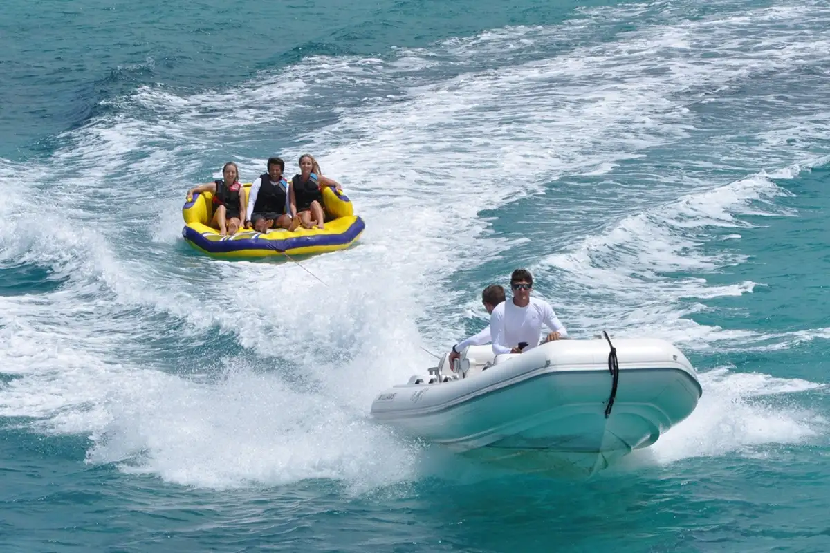 Her main guest tender is a 10m (34ft) powerboat that’s fully rigged for fishing, with 700hp engines. She also carries a jet RIB for waterskiing, a giant water slide, SeaBobs, kayaks, paddleboards, inflatable tows and more.