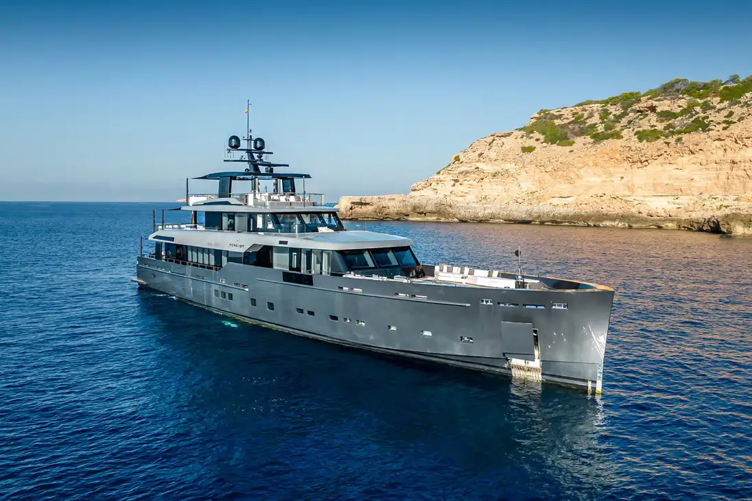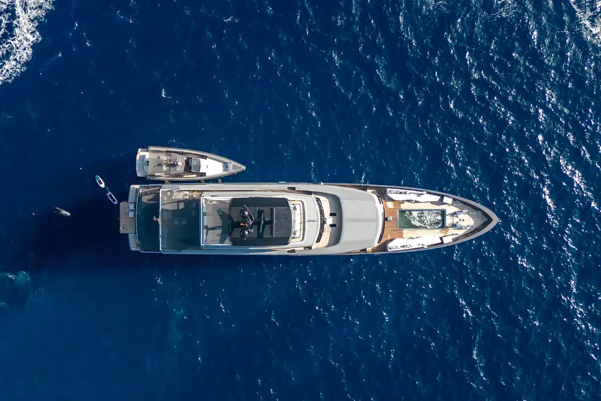 The 44.8m (147ft) FOREVER is a launchpad for adventure. Combining luxury, performance and style, she accommodates 12 guests and offers sprawling interiors and a plethora of exterior decks ideal for both relaxation and entertainment, thanks to an incredible music and lighting system.
