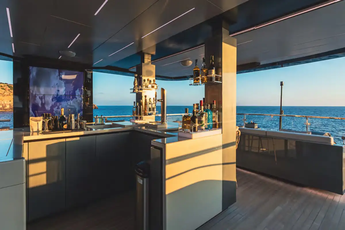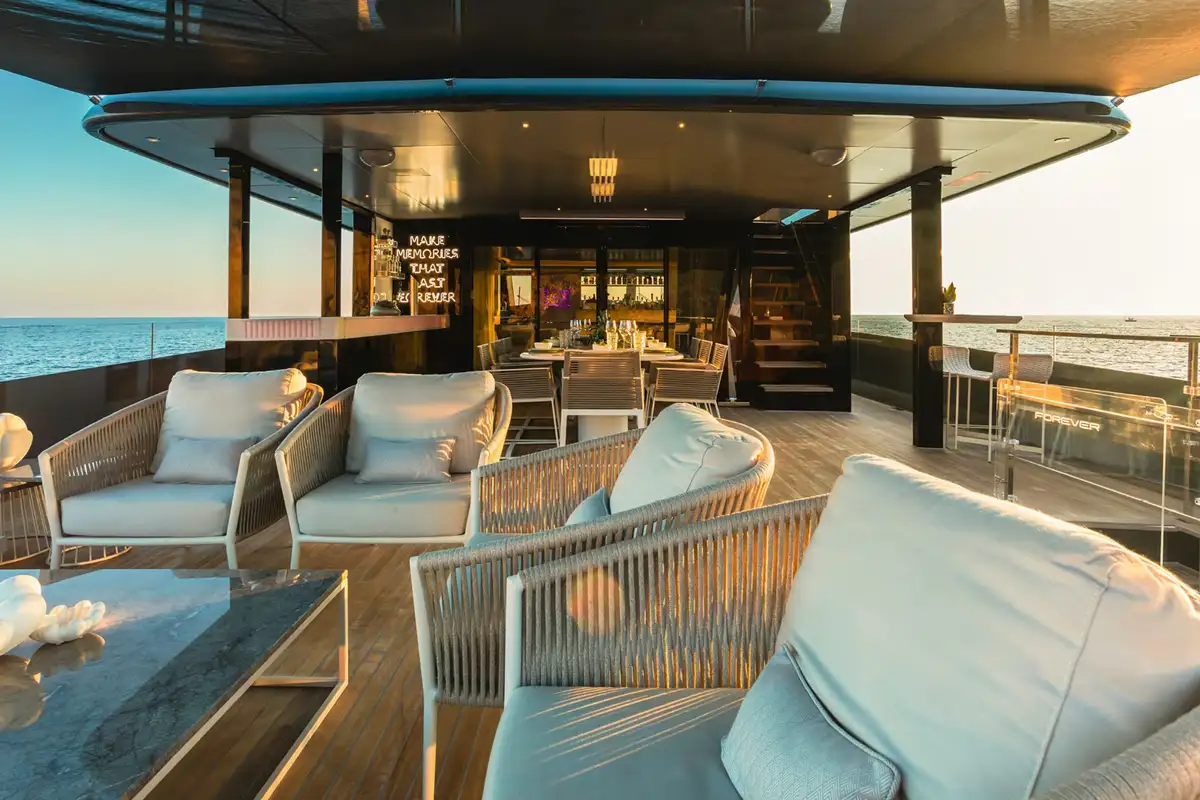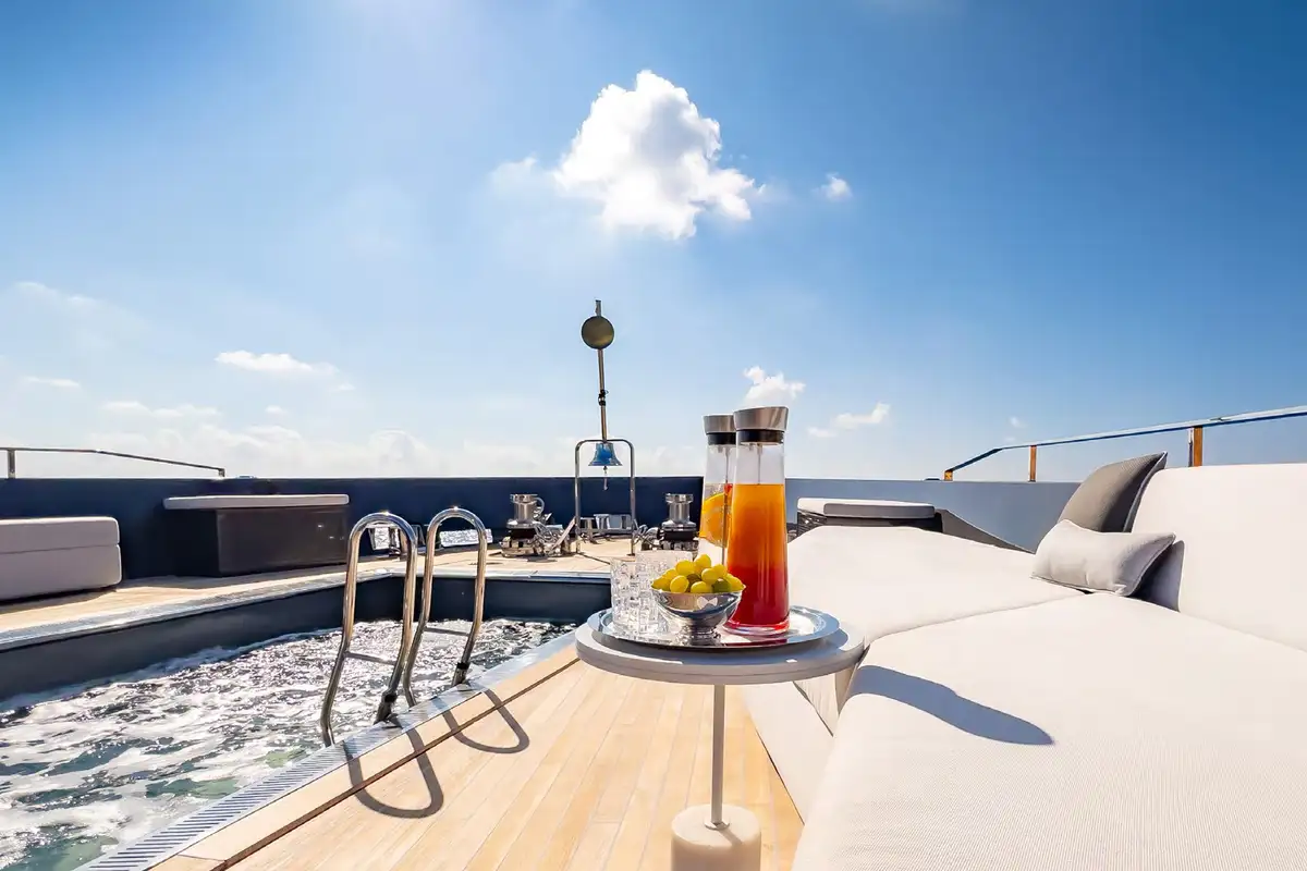 From the sun-drenched sun deck to the waterside beach club, FOREVER promises a truly memorable charter. The standout space is arguably the foredeck pool with jet system, surrounded by comfortable sofa seating. Catch some rays on the sun deck sunpads, serviced by a fully equipped bar, and enjoy plenty of al fresco dining areas with optional shade covers.