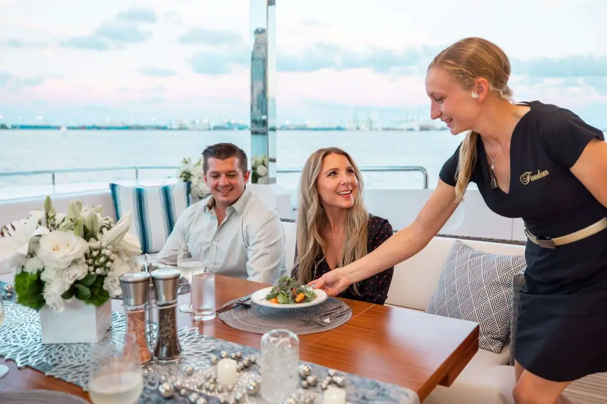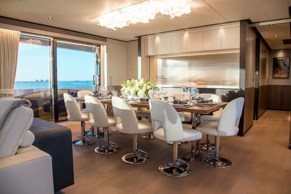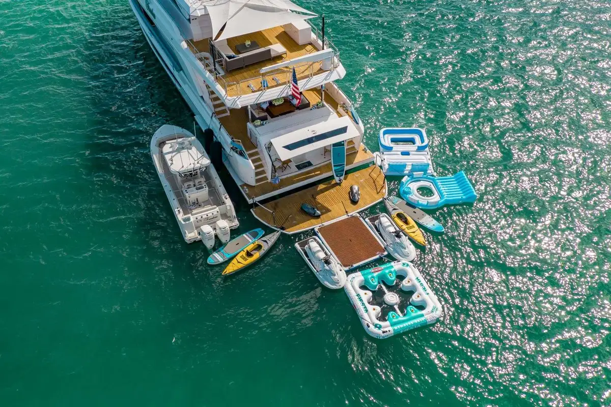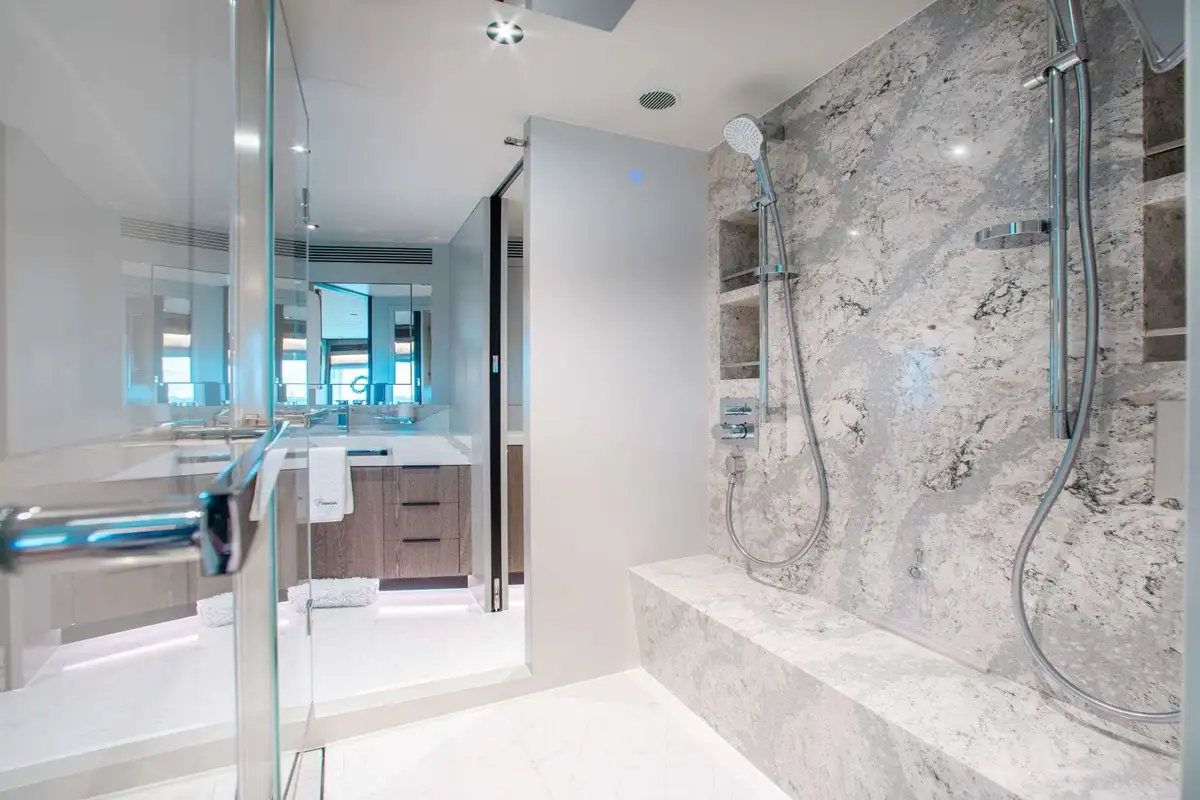 FREEDOM is 33m, designed and built by the renowned Horizon Yachts. She is compact in super yacht terms, and with that comes an intimacy that brings people together. Whether you are chartering with a family group, or friends, you will find that FREEDOM is like a summer house – the place where you just want to hang out together. A charter on board will be fun and refreshing with the wide selection of watertoys. She can accommodate 10 guests in five cabins. The owner’s suite is a full-beam 7.7m (25.3ft) wide cabin on the main deck and boasts an en suite walk through shower room. On the lower deck, there are four guest cabins. All guest cabins are en suite with shower compartments. Breakfast can be laid on the upper deck under the shade, so you can soak up the view of your anchorage while you eat and chat.