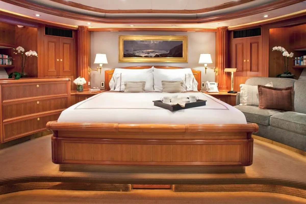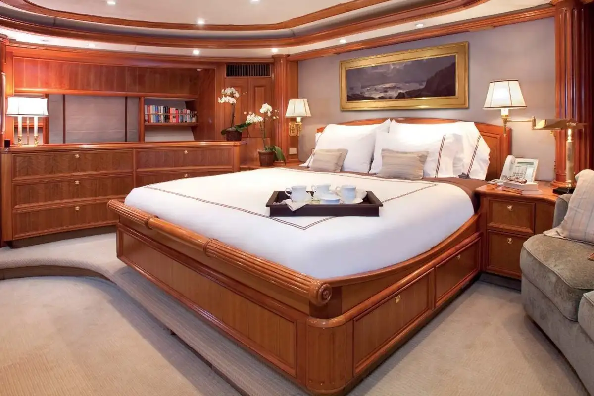 GENEVIEVE’S garage is packed with toys; try waterskiing, wakeboarding or kneeboarding behind one of the yacht’s tenders, or take a trip to a nearby grotto for a snorkelling expedition. If you fancy your chances at catching dinner, the crew will be happy to help you cast a line off the back of the yacht. An informal lunch is served in the cockpit under the shade of the bimini, with the water gently lapping at the hull a few feet away.