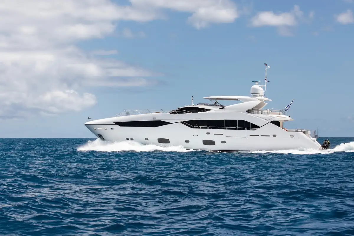 Welcome onboard George P, the stunning Sunseeker 115 Sport. This statement making yacht, built in 2013 and extensively refitted between 2021-23, delivers a luxurious experience with a modern, refined tone.