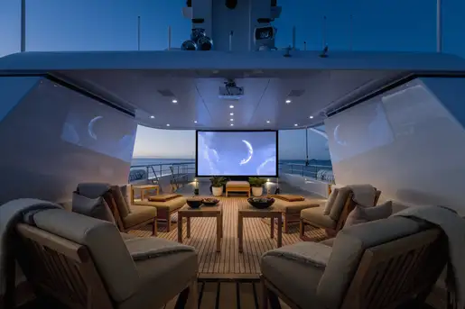 She is deceptively spacious inside and out for a yacht of her size with vast deck spaces and voluminous interiors. She has flexible, family-friendly accommodation with all cabins on the main deck for one-level living, an excellent sun deck with jacuzzi and outdoor cinema, plenty of gym equipment and watertoys for everyone.