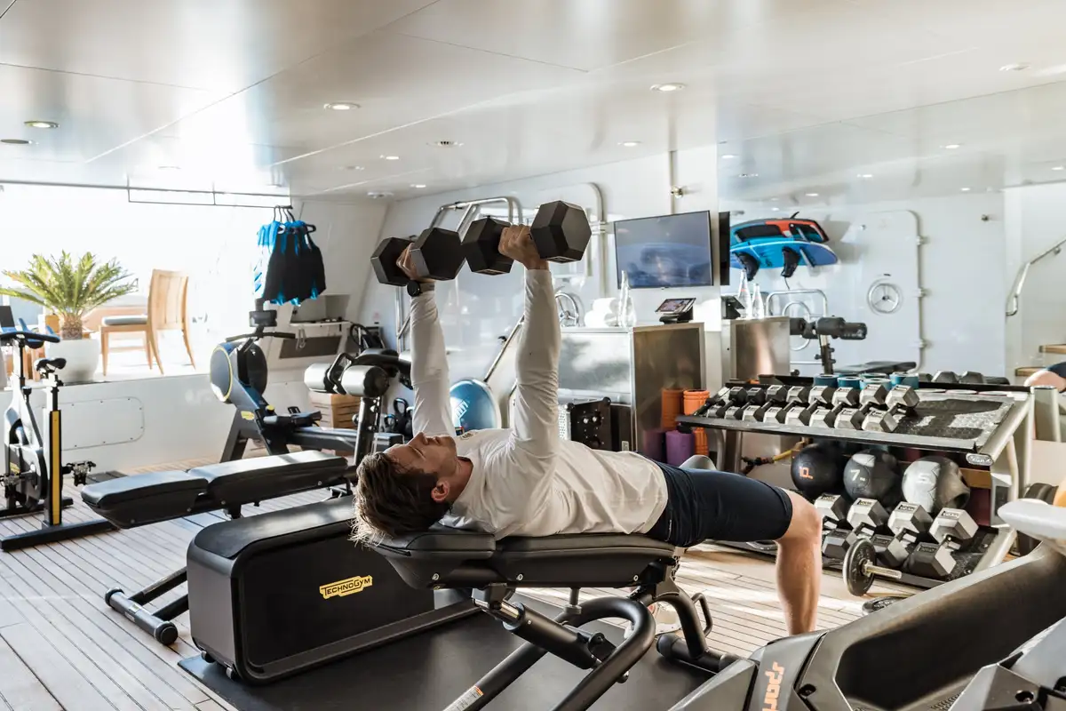 Fitness fans will love the gym facilities in the beach club, perfect for sea-level workouts. Once you have reached your fitness goals for the day, you can unwind in the adjoining steam room. When ready for lunch, guests have step-free boarding onto the chase tender that will speed them at up to 50 knots to a deserted white-sand beach where the crew has set up the yacht’s BBQ for a beach party.