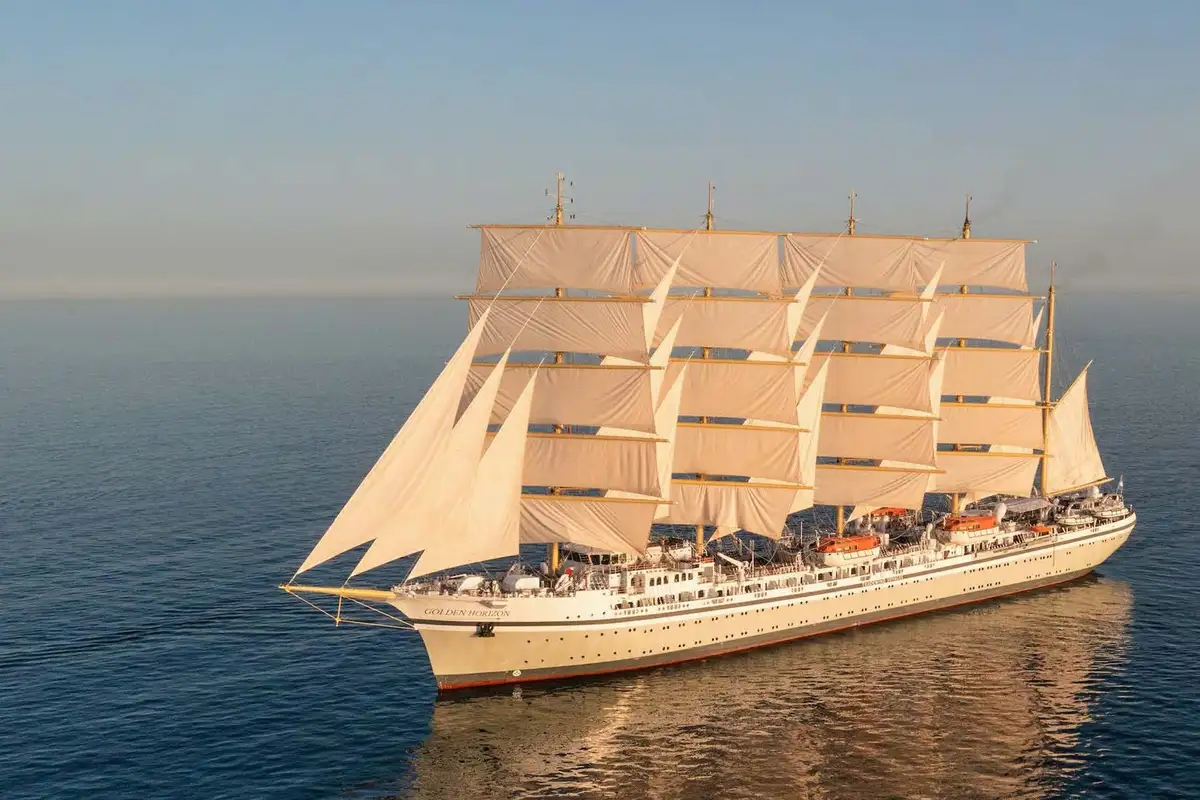 Delivered in 2021, GOLDEN HORIZON is the largest tall ship ever launched, surpassing the five-mast barque France II (1913) – the vessel she was designed to replicate – by 15.7m (51ft). While larger sail-assisted vessels exist, GOLDEN HORIZON is primarily a sailing ship, capable of cruising at 17 knots under sail alone.